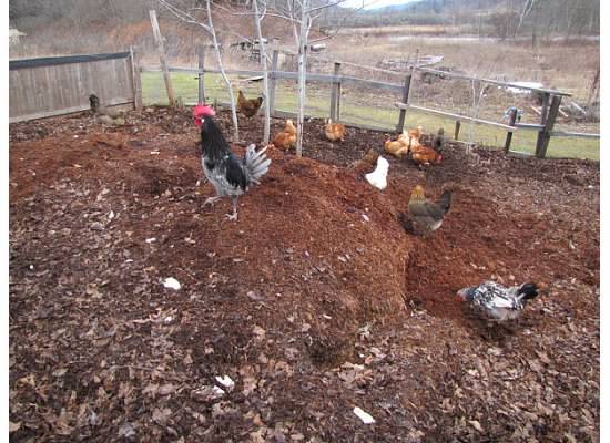 My personal favorite is where the compost pile is actually a thick “mulch” on the chicken yard that’s routinely added to. My goal is to have no bare dirt in any part of the chicken yard. Preferably, at least part of the compost chicken yard should be covered with a roof, so that the chickens can “work” it through all kinds of weather. As an added bonus, I like two or more fenced off “pasture” areas into which the chickens can be rotated for grazing. With their compost area to scratch in, they will be less likely to dig up the grass and other greens in the “pasture” areas. That way the get the best of both worlds - scratching in "dirt" & eating fresh greens.