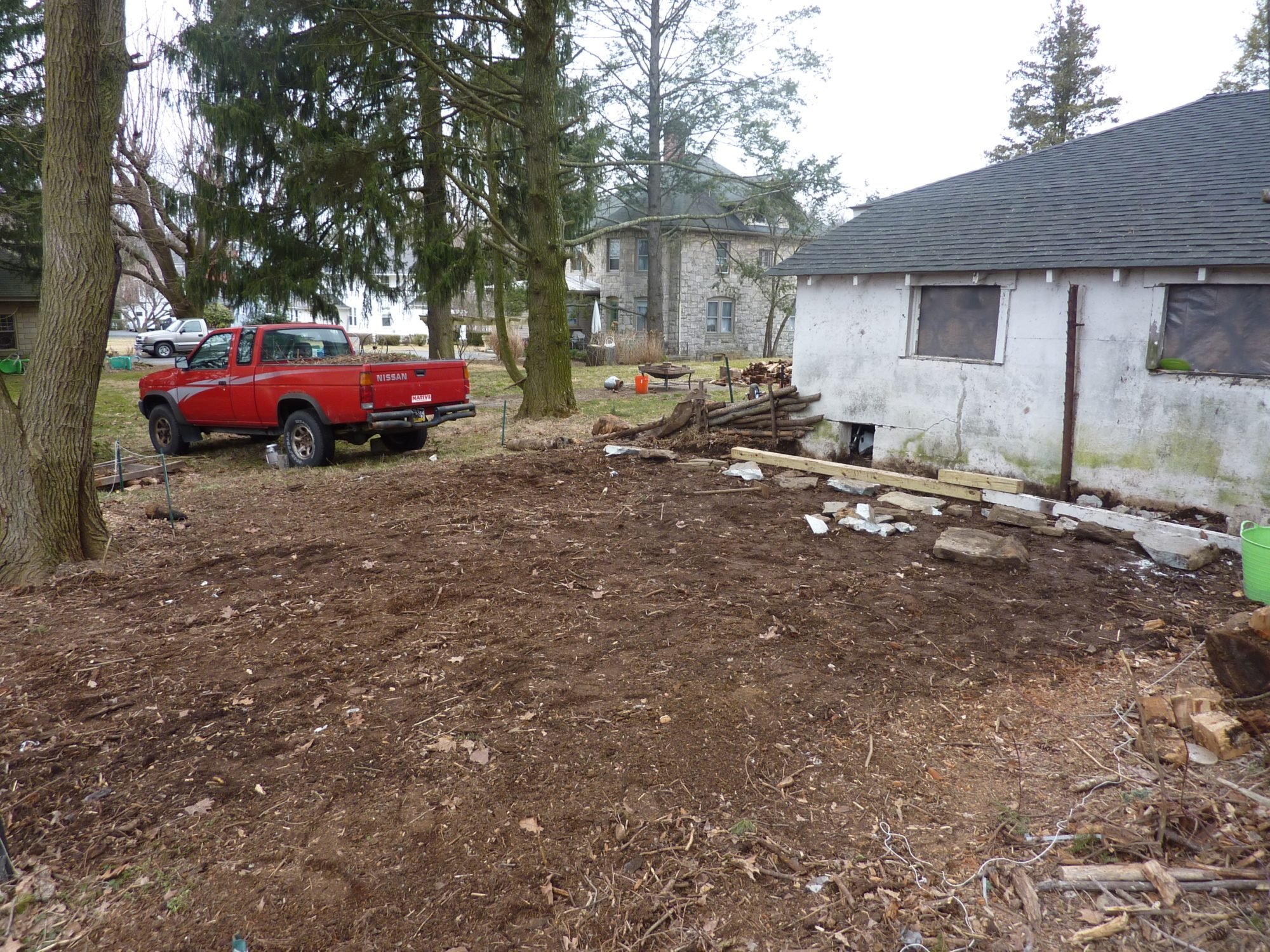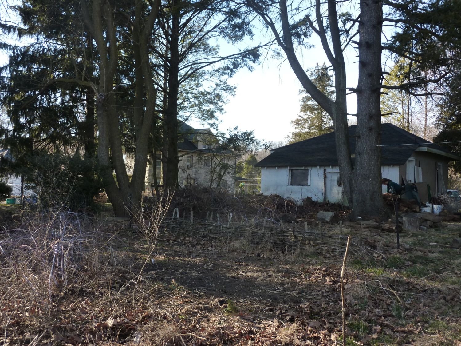 From a bit further back on the property. The area closest to the camera is our "back garden" which is a space we've dedicated to the plants that do okay when you let them go wild, squash, potatoes, asparagus, black raspberries and horseradish. Unfortunately, we've been fighting (and losing spectacularly) with a groundhog for control of this space. We're going to be installing a fence around this space when we fence in the chicken run, and I'm going to win this year.