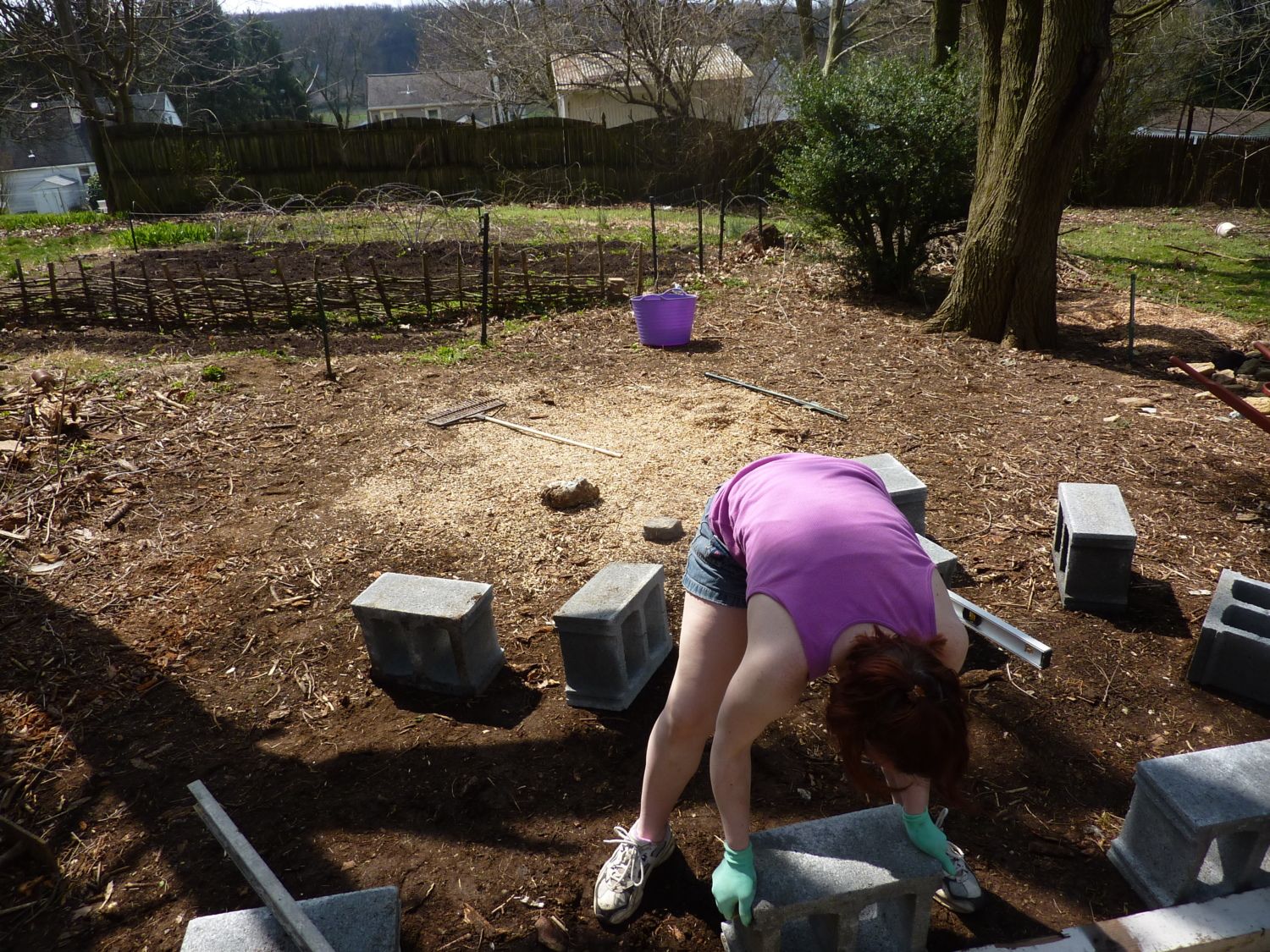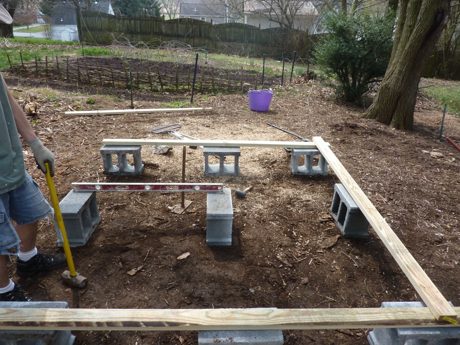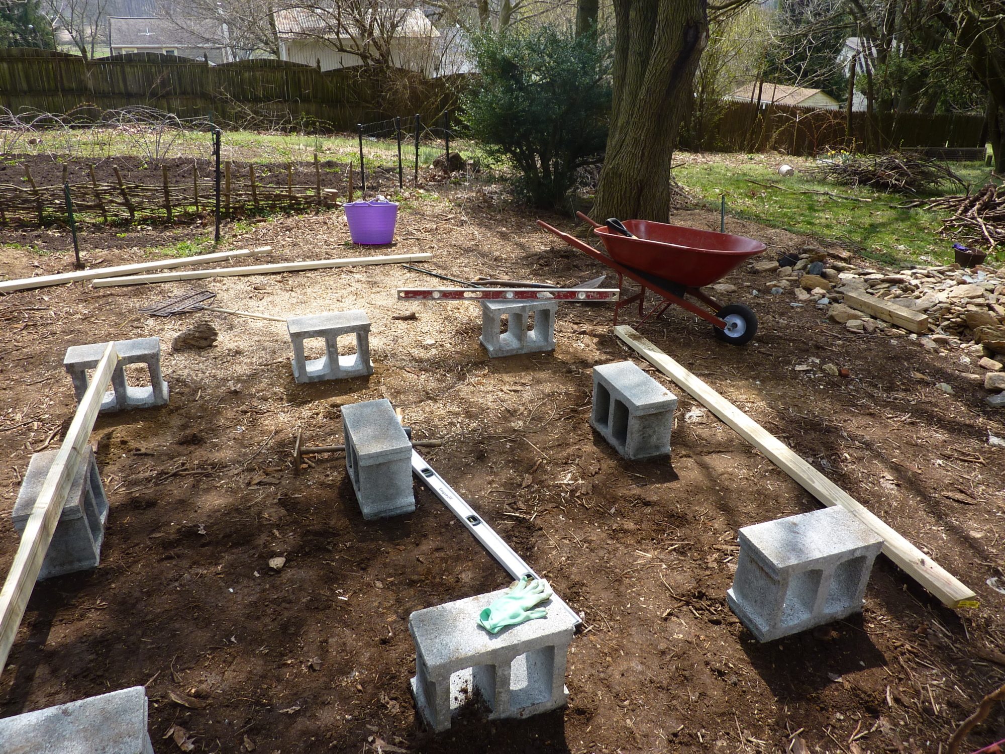 The already split logs we gathered from the area, along with the 40-some bricks we scavenged from under the brush.