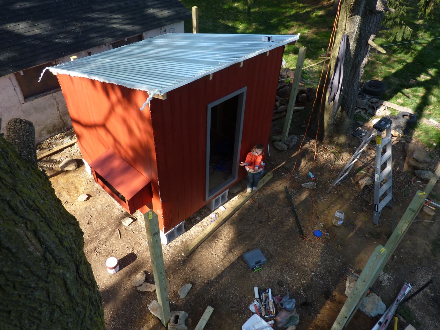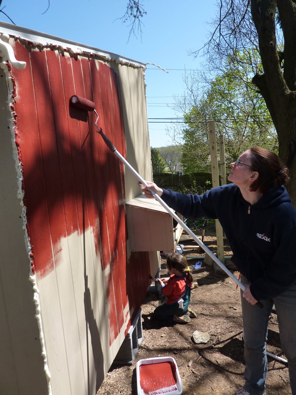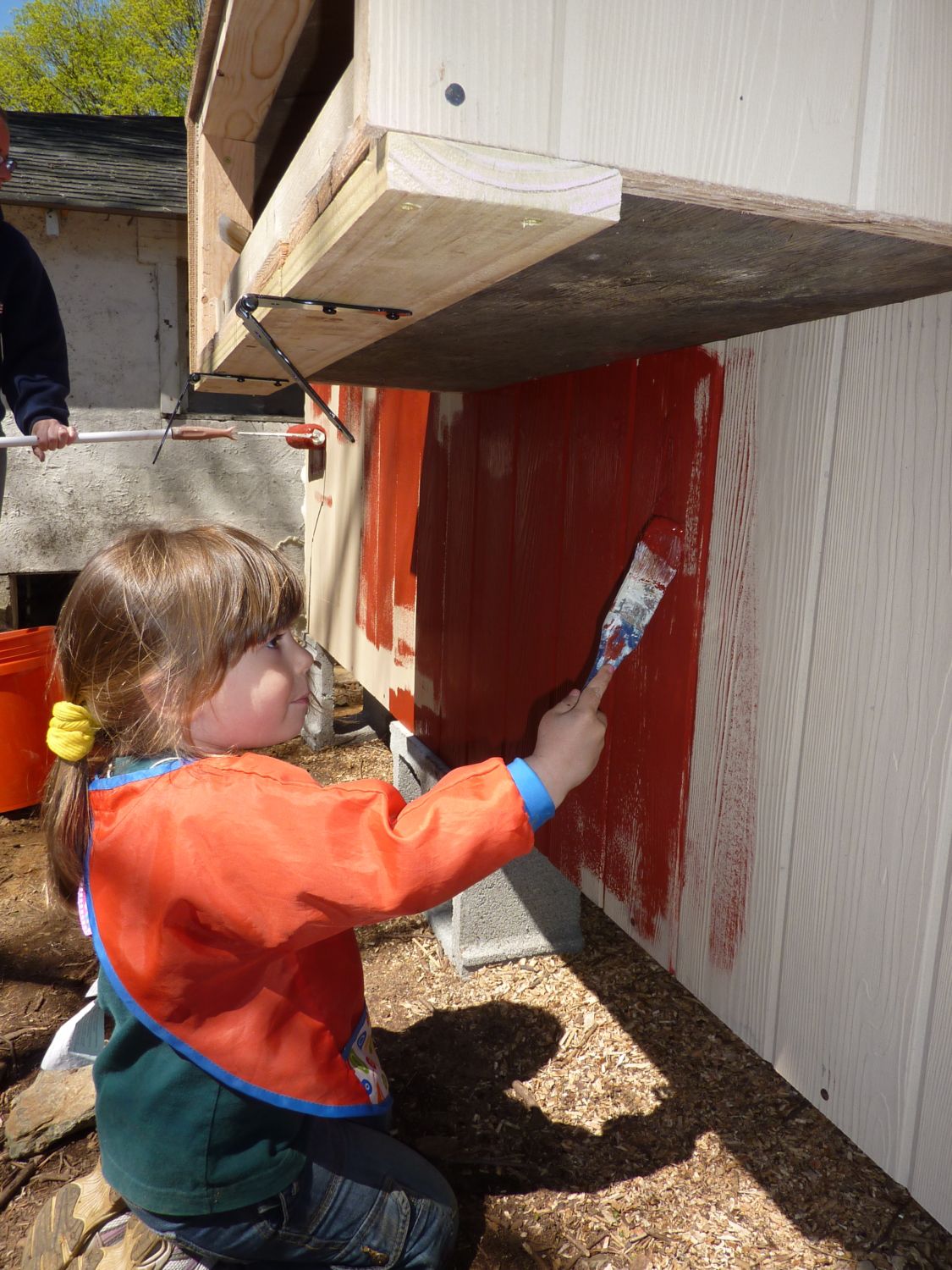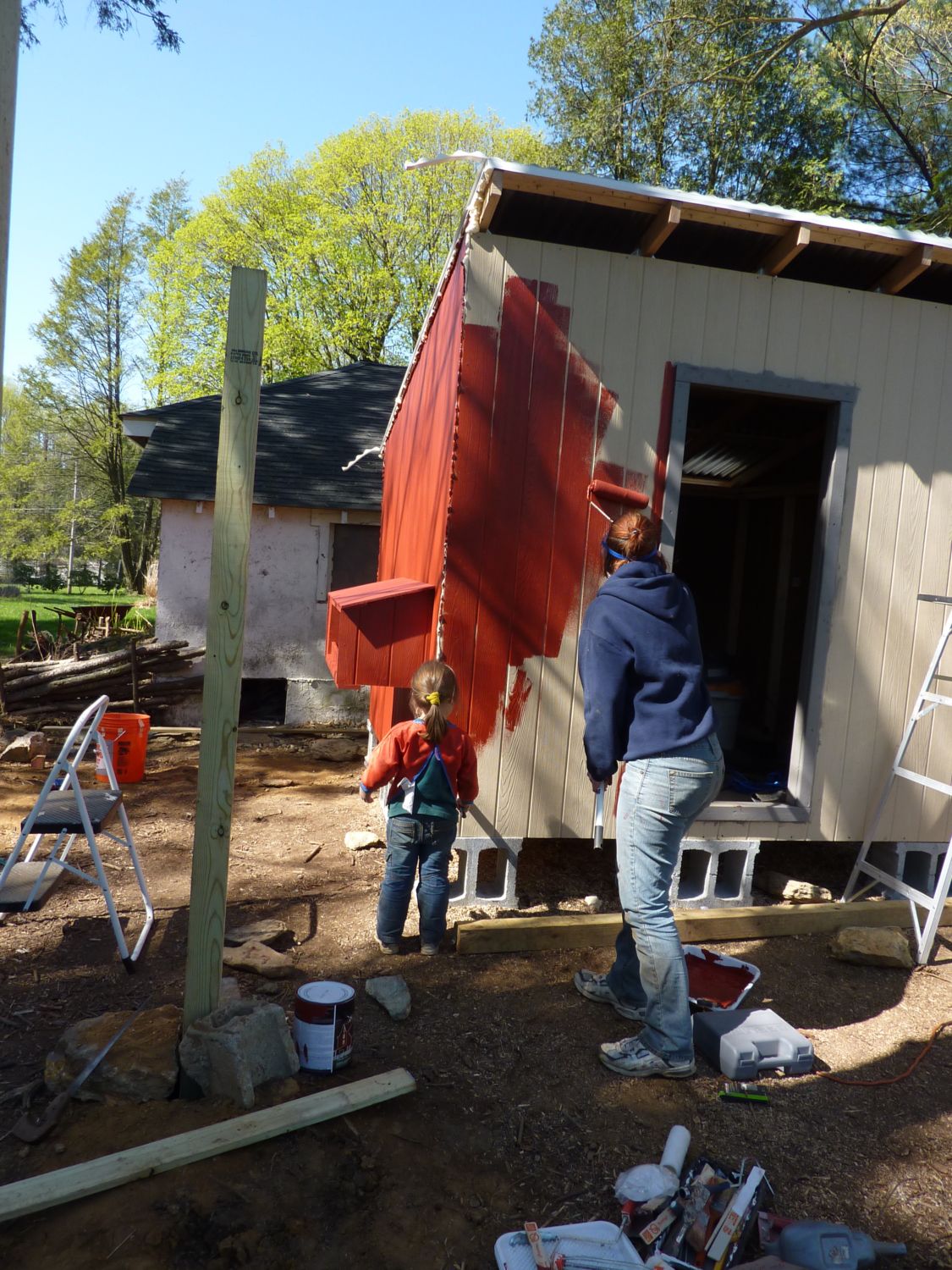 Gabriella was a little confused as to why we were using red barn paint, since it's a chicken coop, not a barn. Very literal that one.