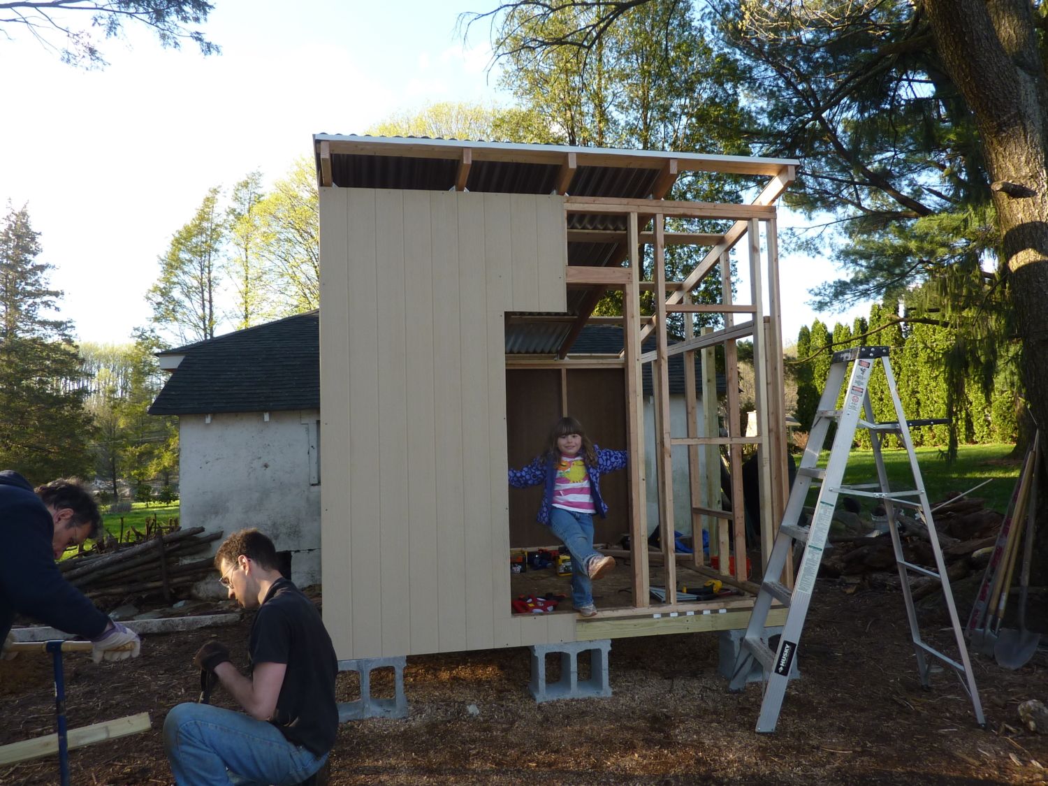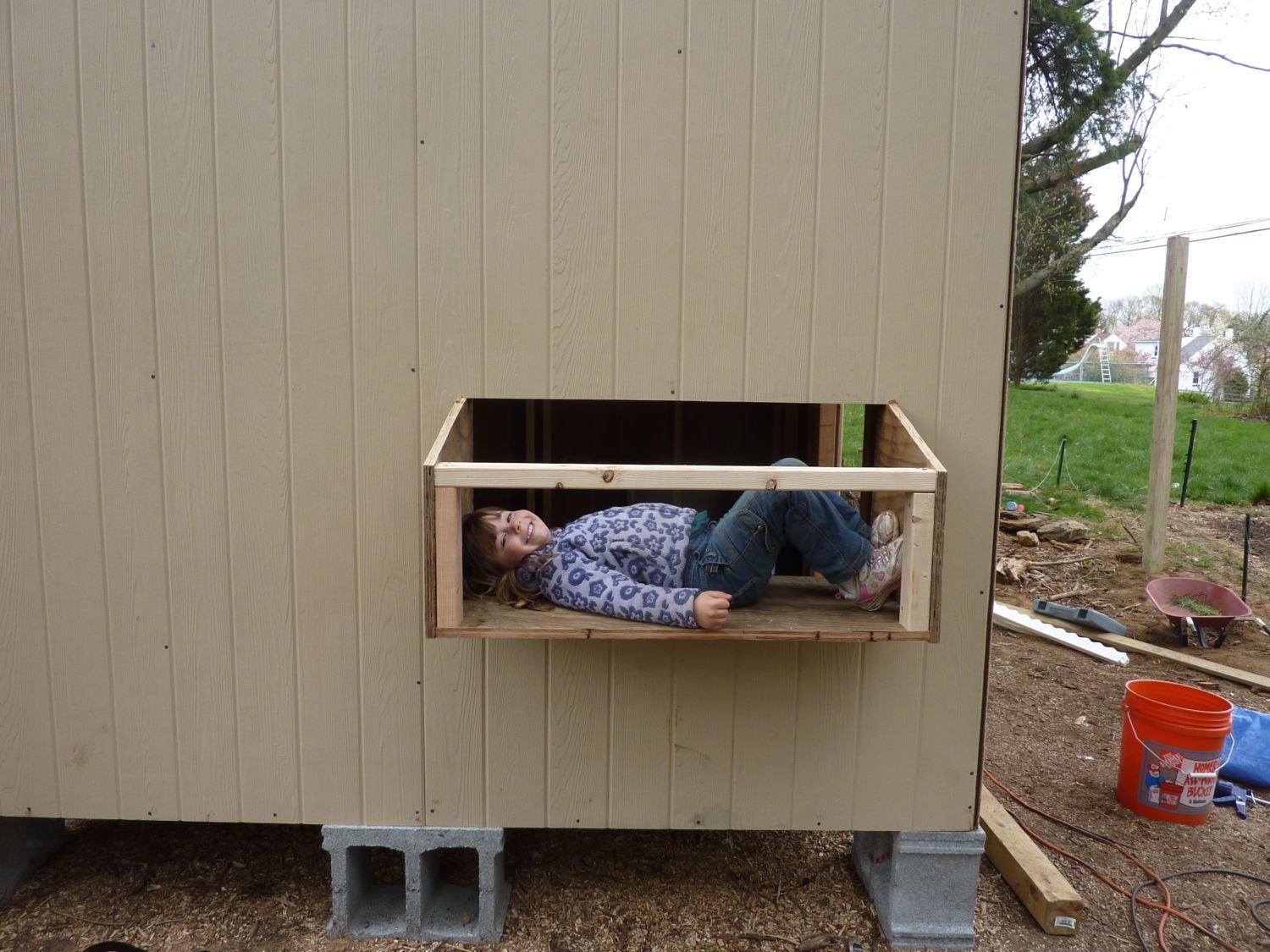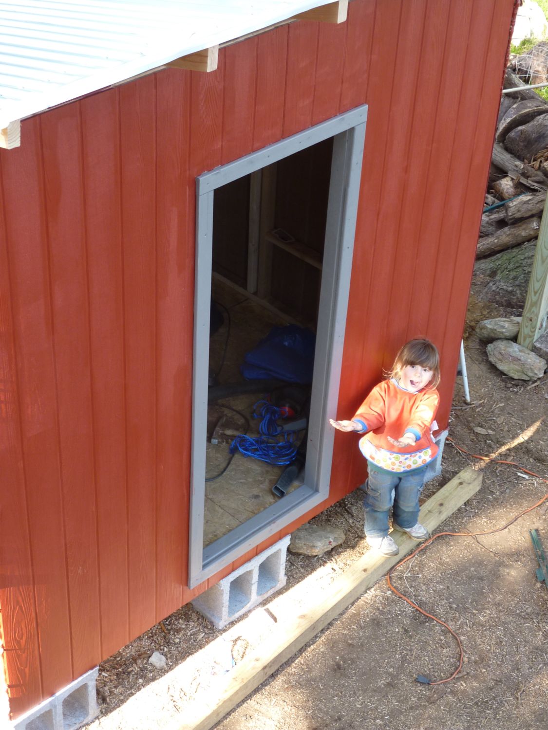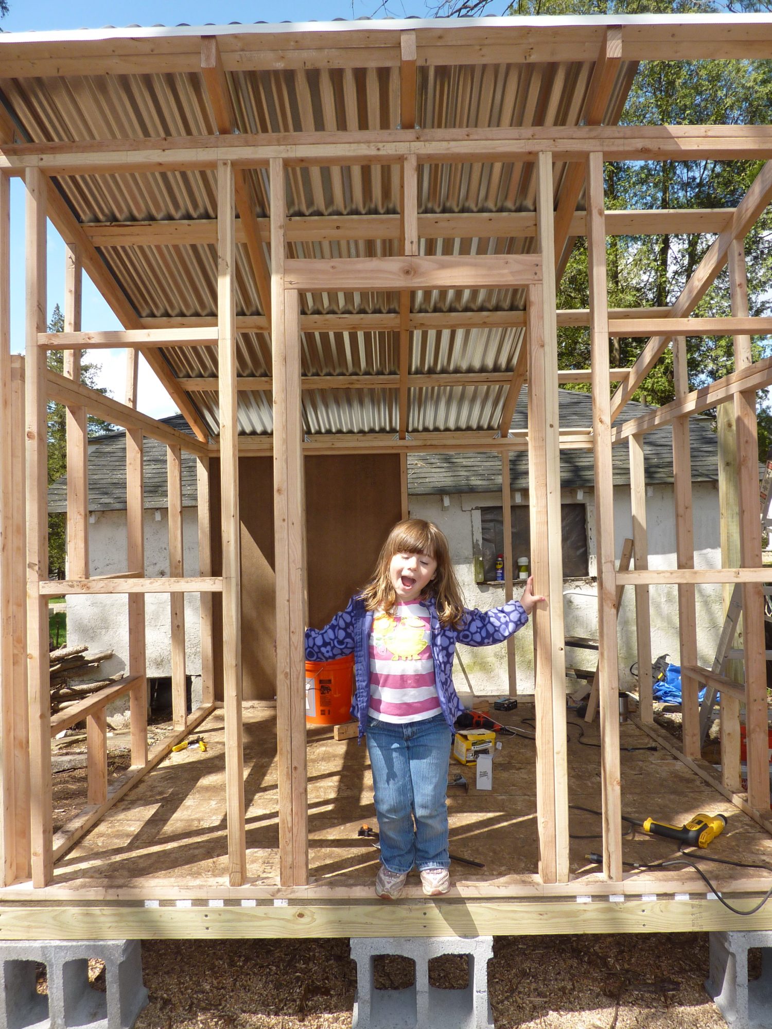 Gabriella was a little confused as to why we were using red barn paint, since it's a chicken coop, not a barn. Very literal that one.