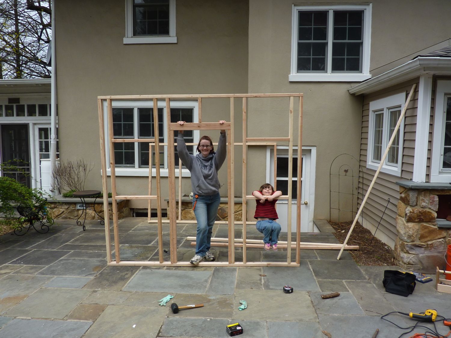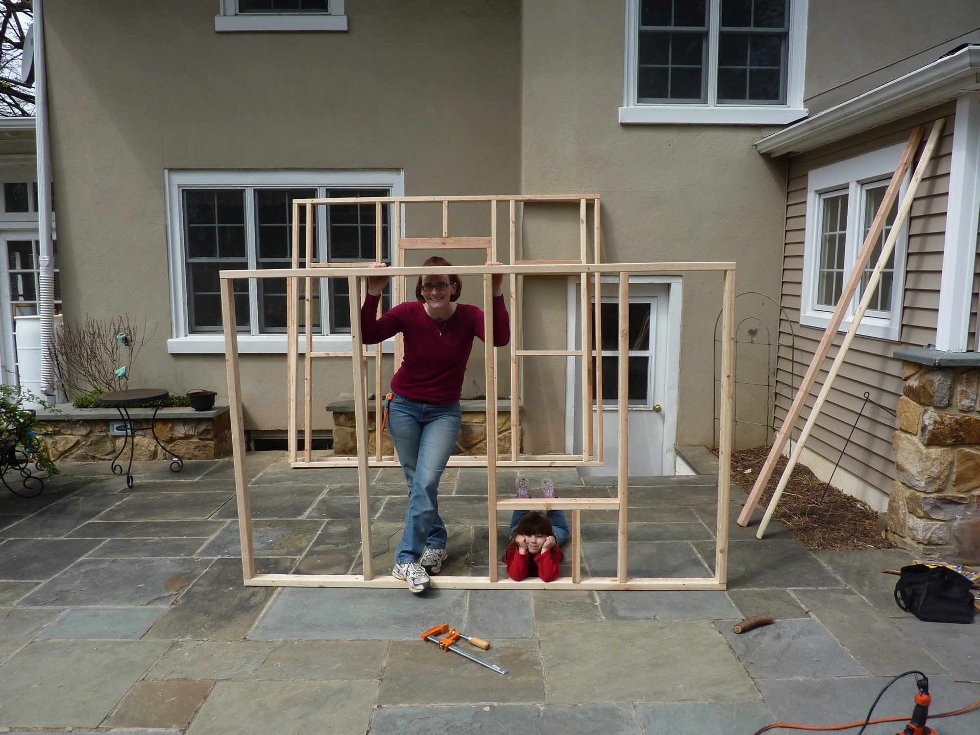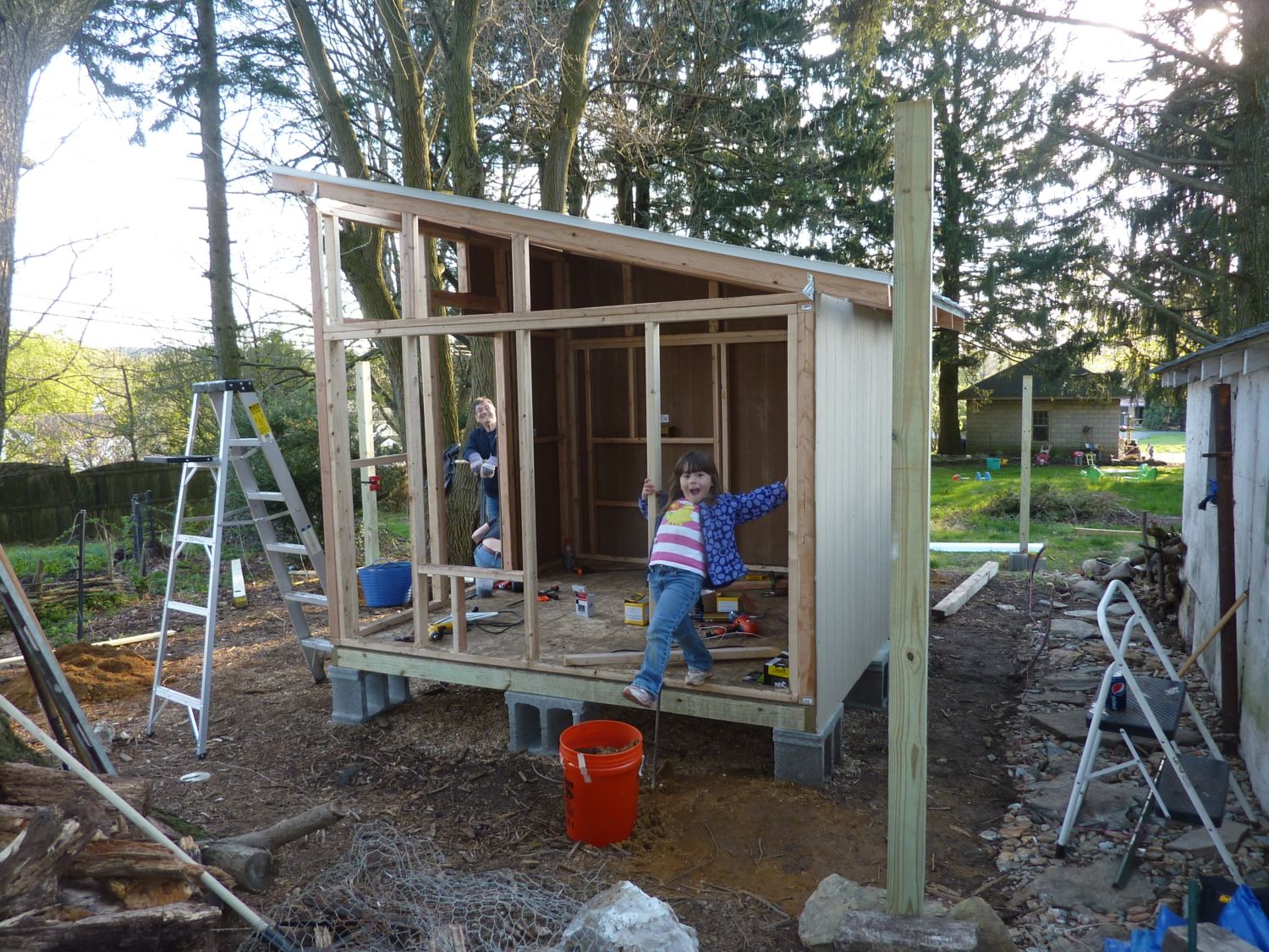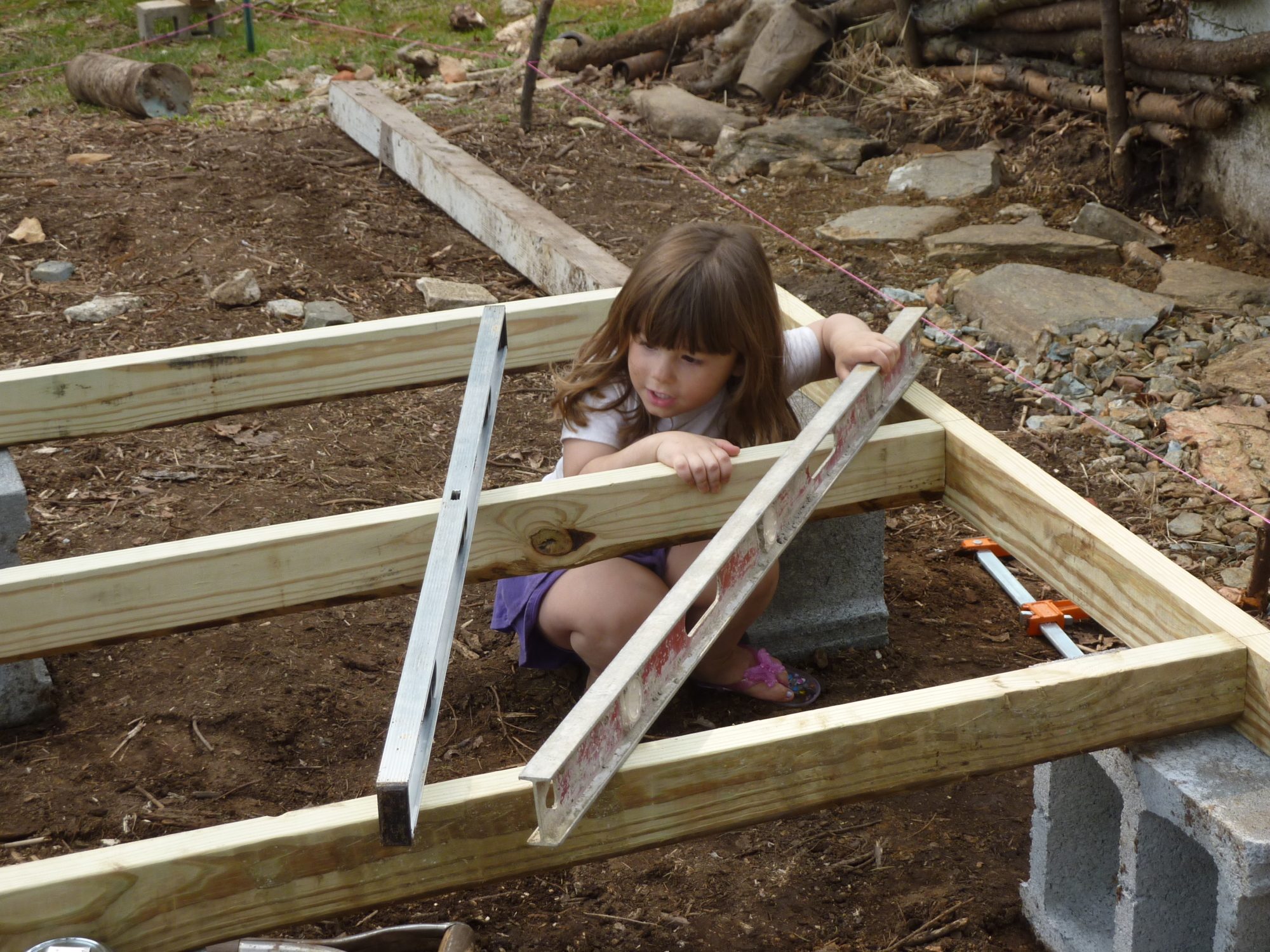 Gabriella was a little confused as to why we were using red barn paint, since it's a chicken coop, not a barn. Very literal that one.