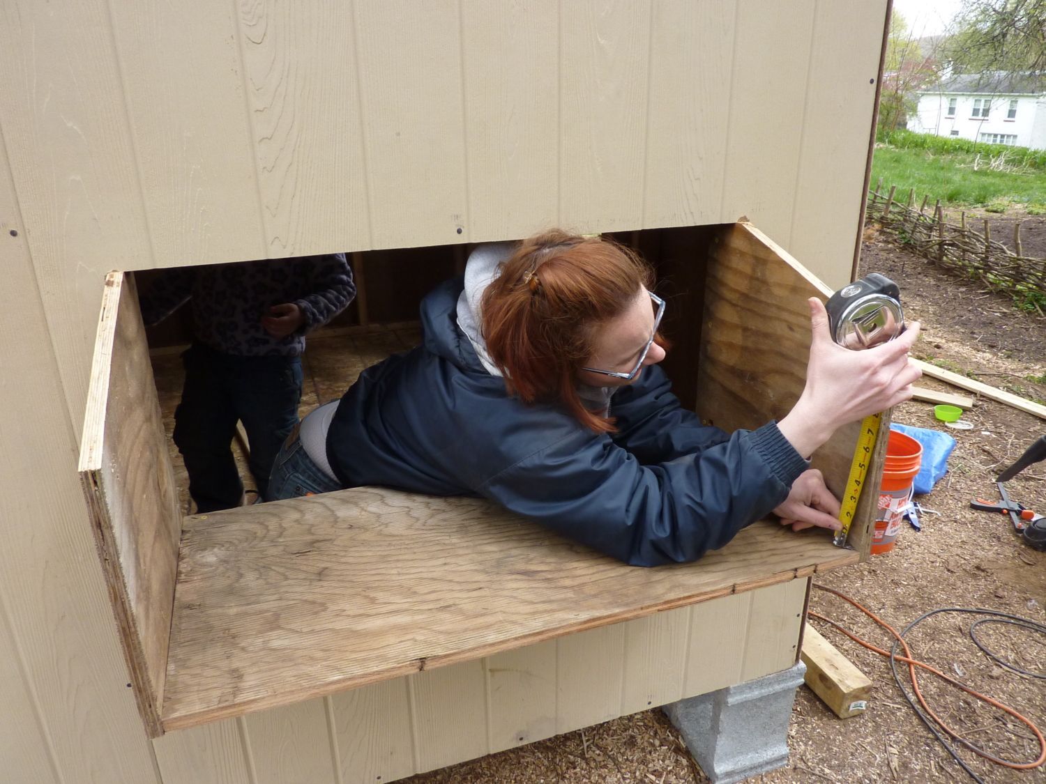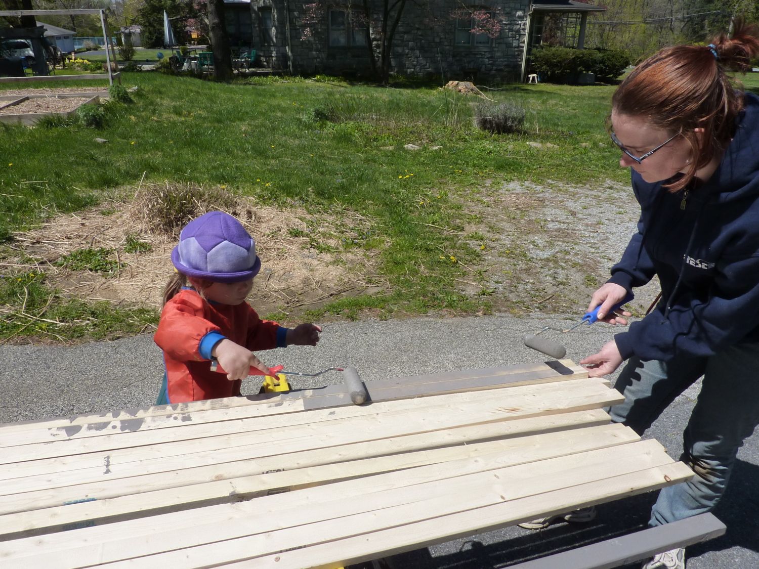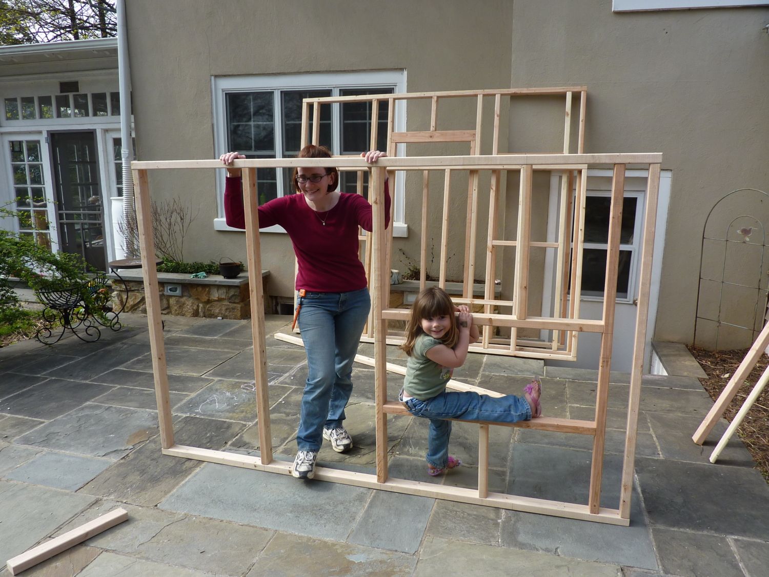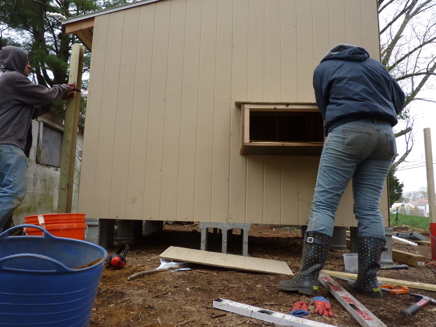Gabriella was a little confused as to why we were using red barn paint, since it's a chicken coop, not a barn. Very literal that one.