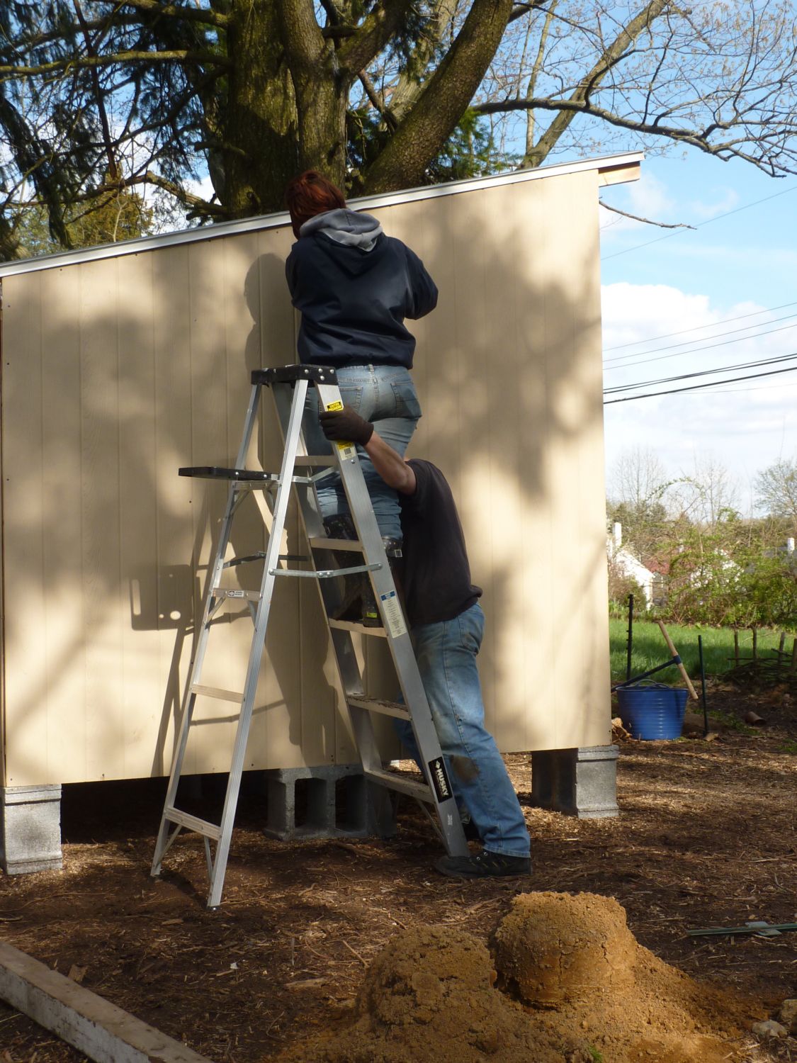 Since I'm only 5'5", that last piece of roofing wasn't going up without while I was mostly on my own, so I got started on the siding.