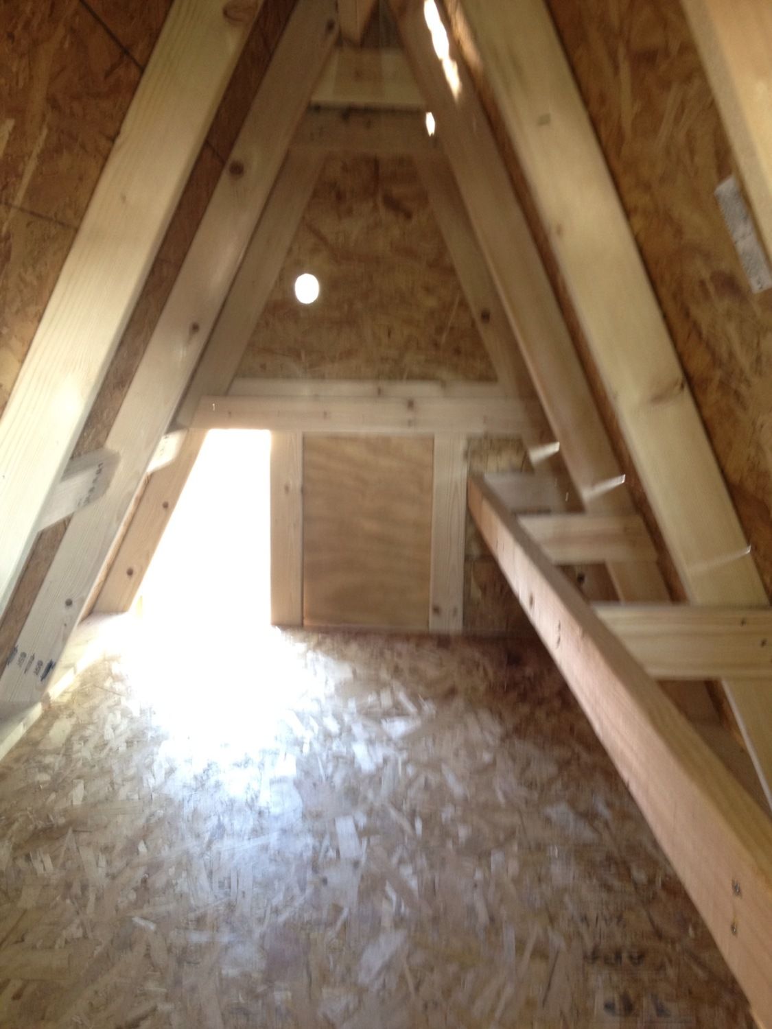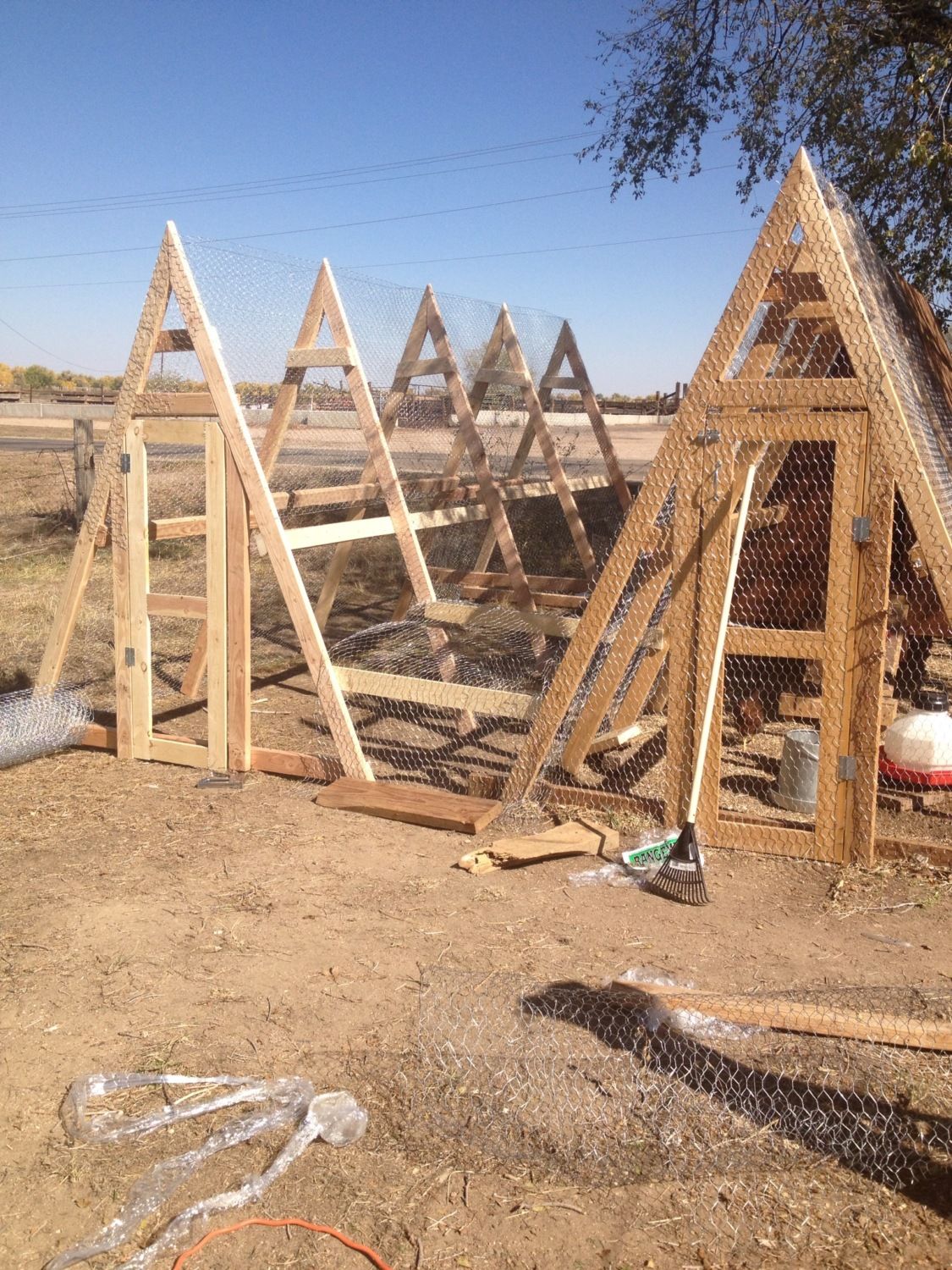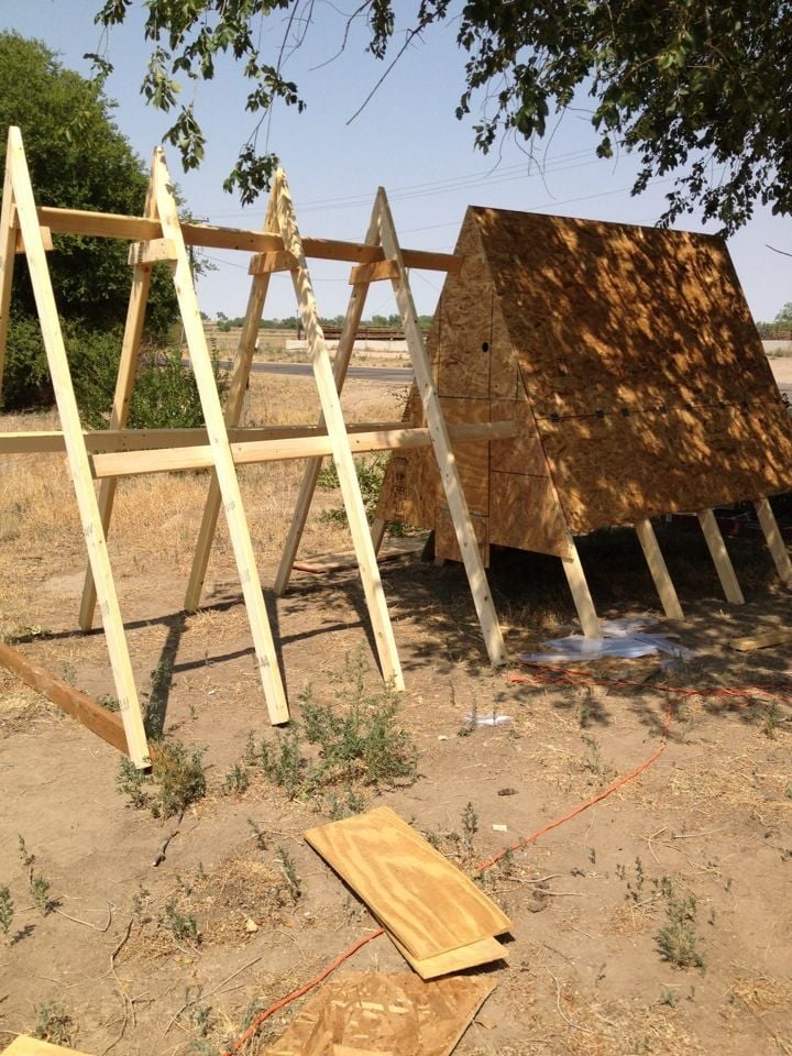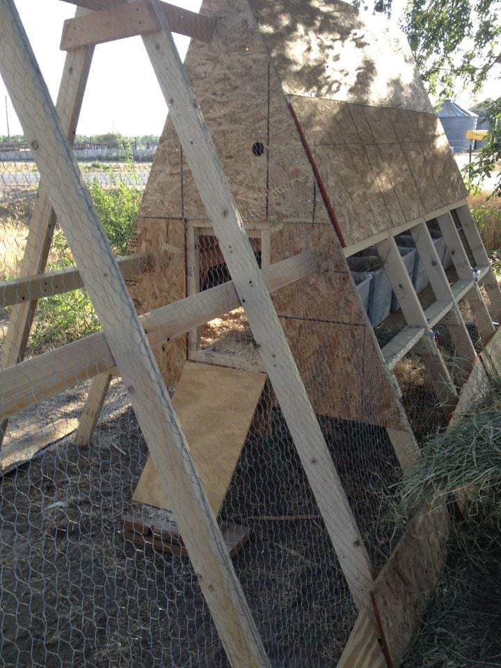 Now to build a chicken coop. There were hundreds of ideas for coops on the internet. My husband and brother said they were willing to build it for me, however, my job was to pick one I liked. Deciding on the type was time consuming but finally I chose an A-Frame style. My reason for the choice was ease in construction. Shade would be provided under the coop and I just thought it would look cool. This coop was similar to those on the internet, but I did make a few minor adjustments.
