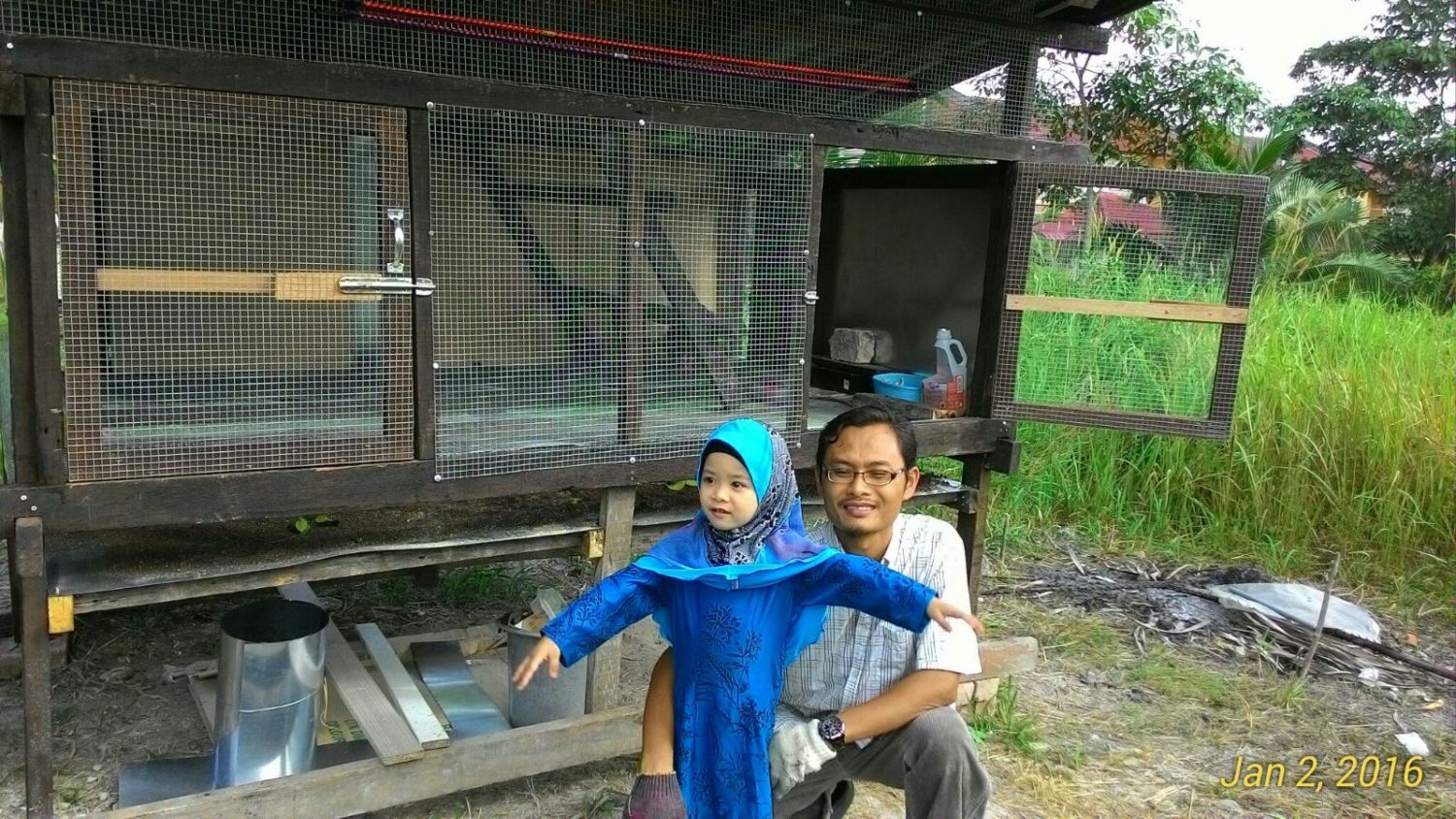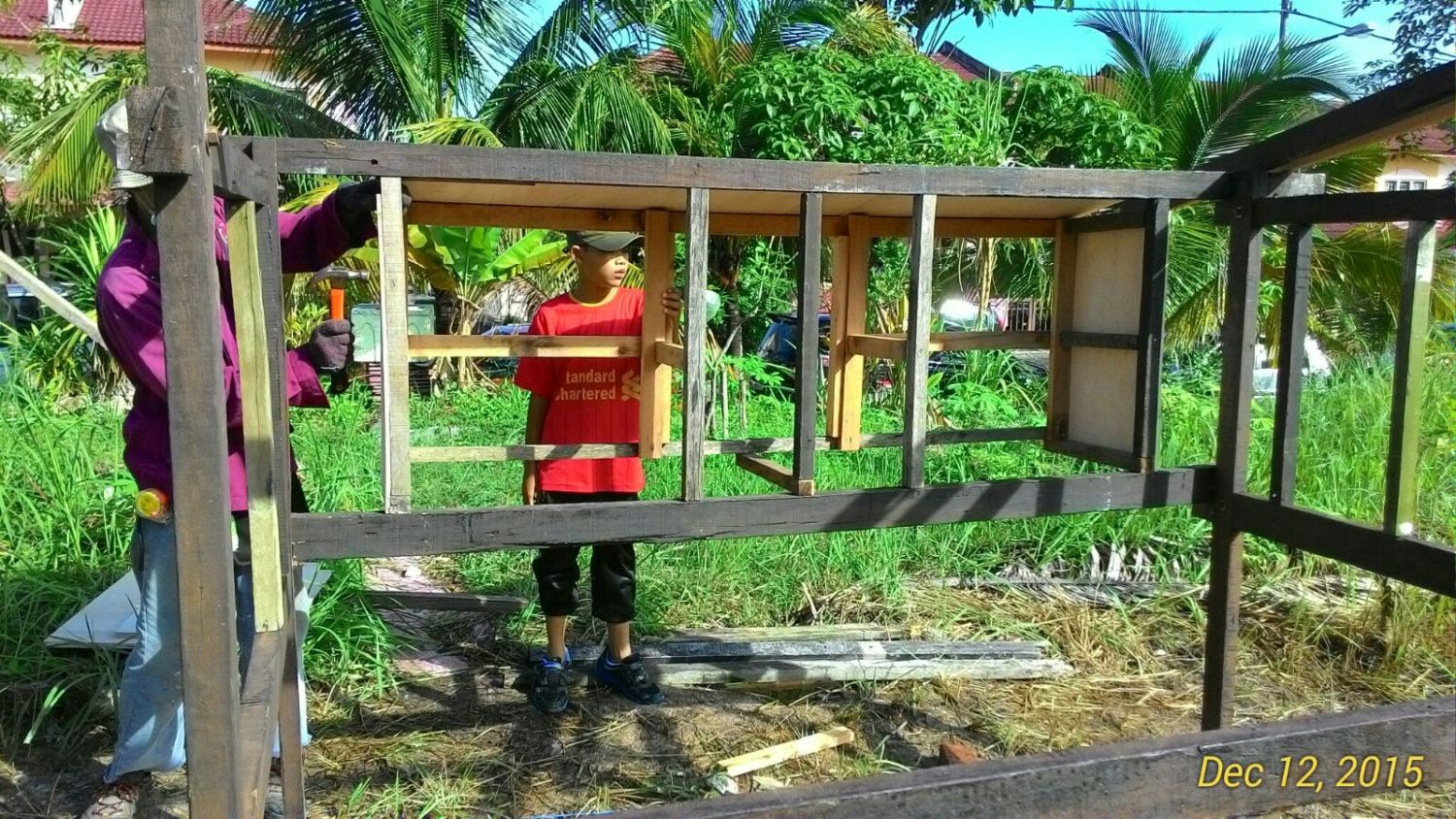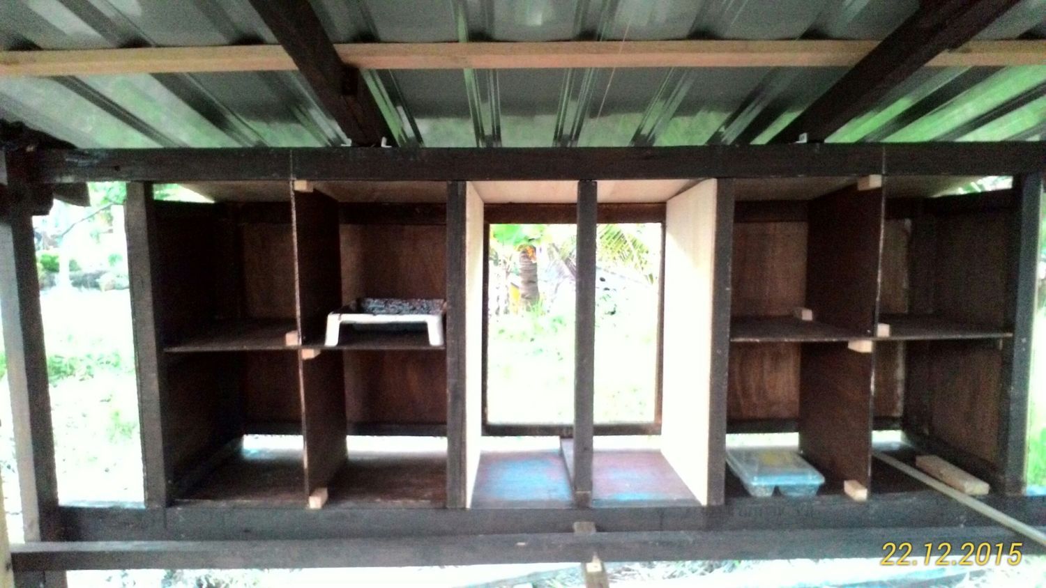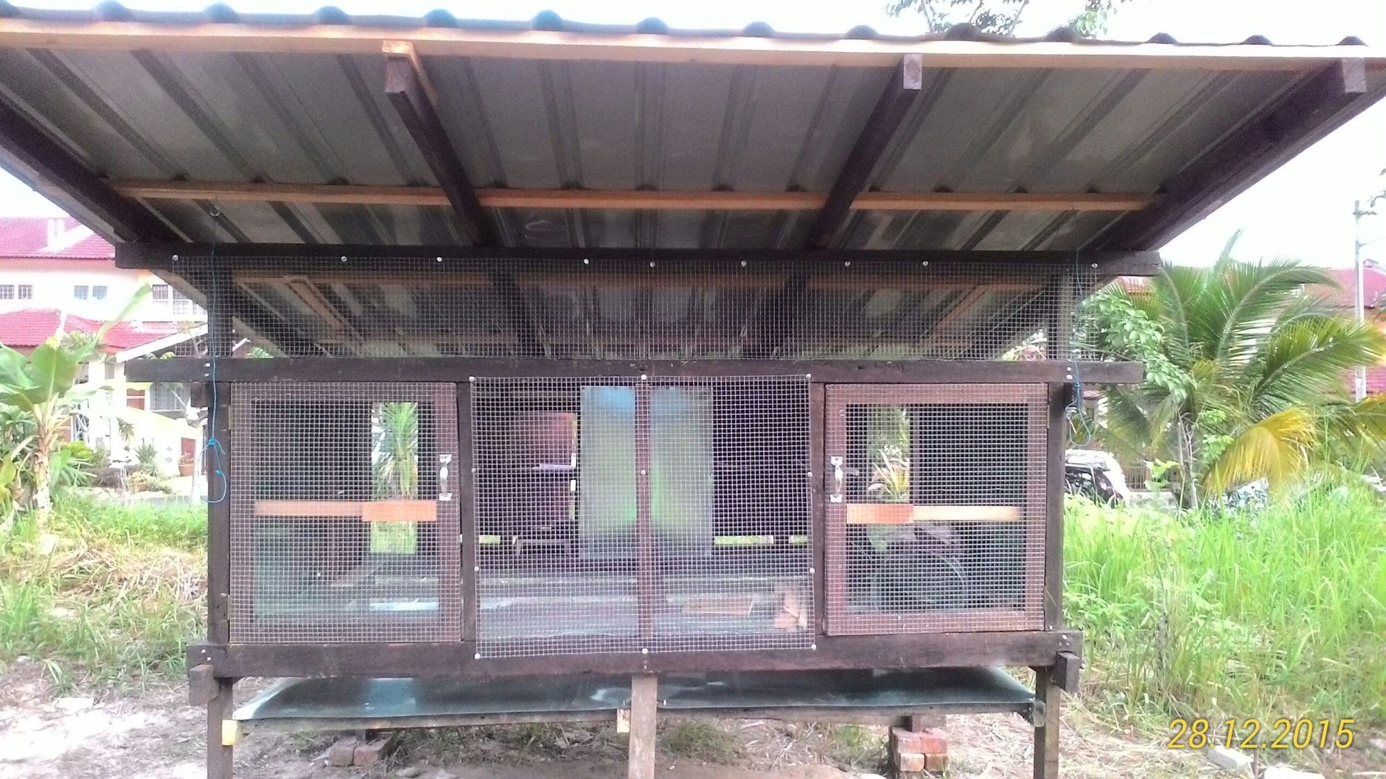 Me & son busy finishing the nesting box. Putting up all the siding cutting using 2 (9mm) pieces of 8'x3' plywood. Cost me RM100(USD24) for that 2 pieces.