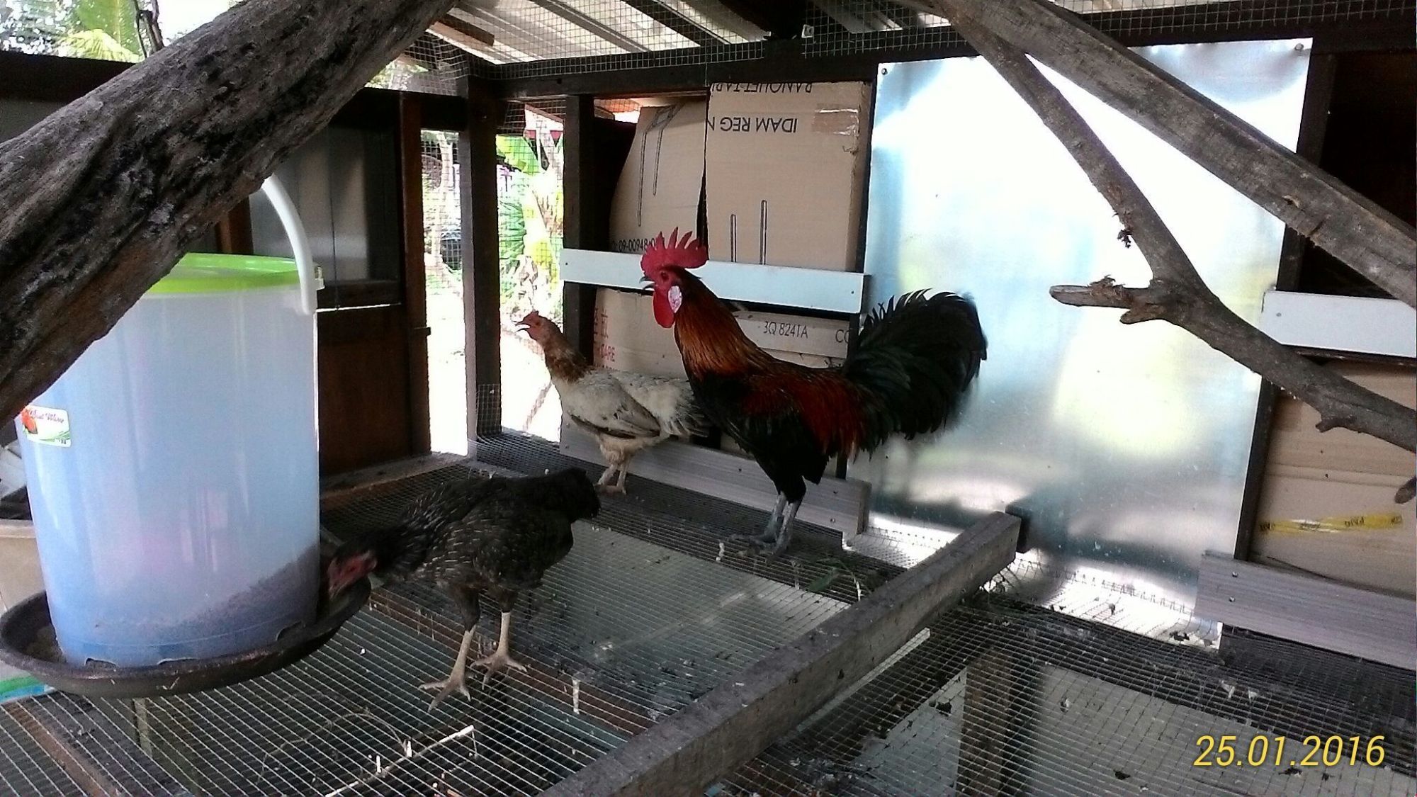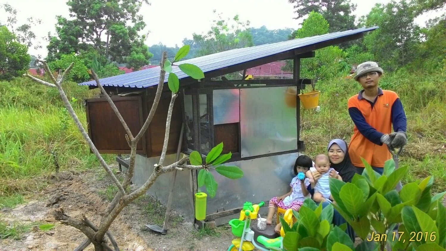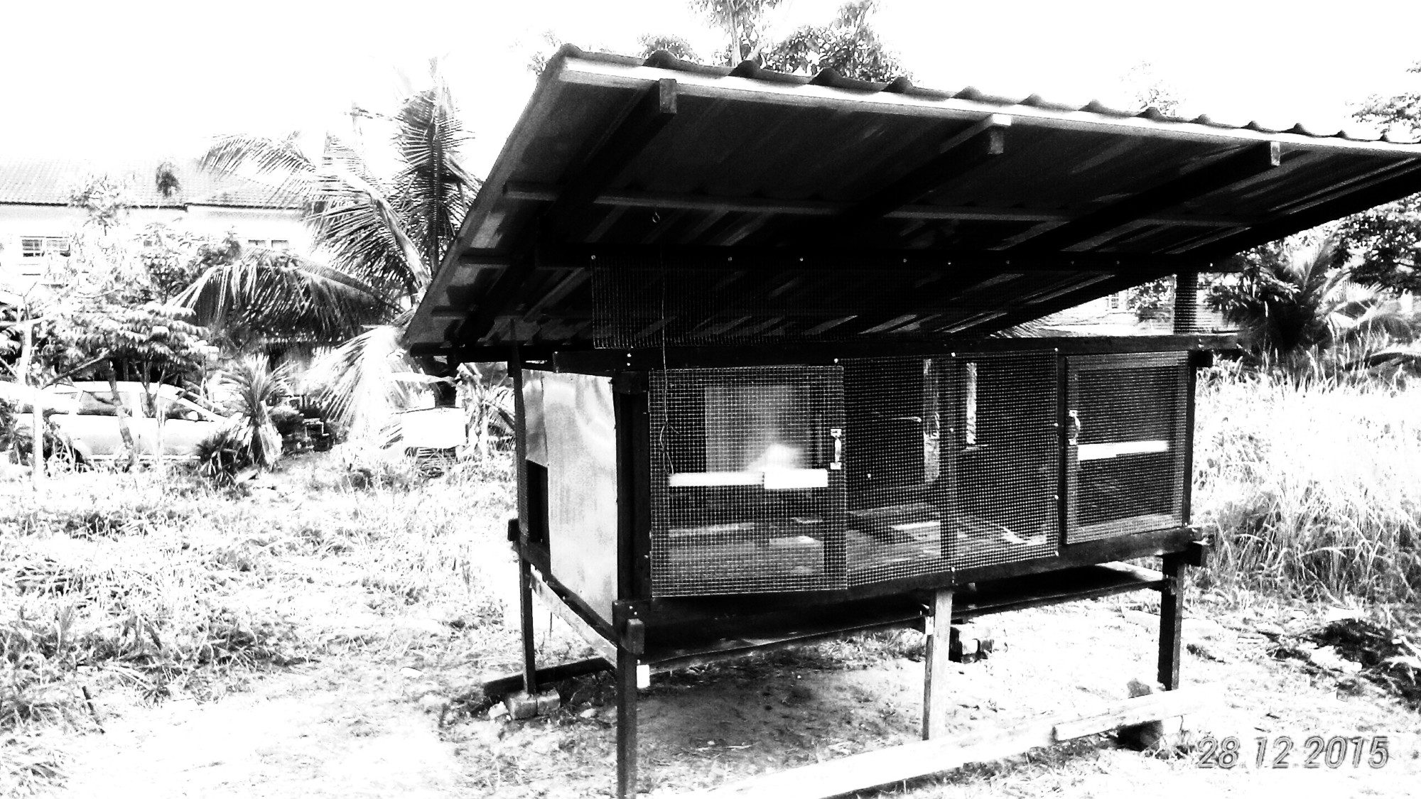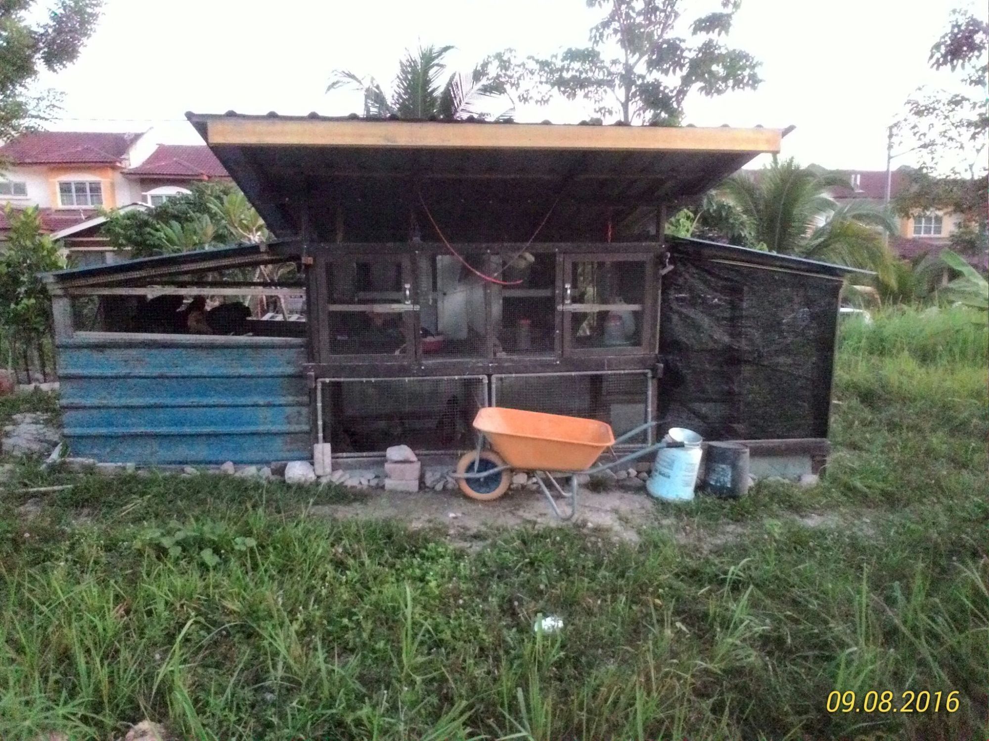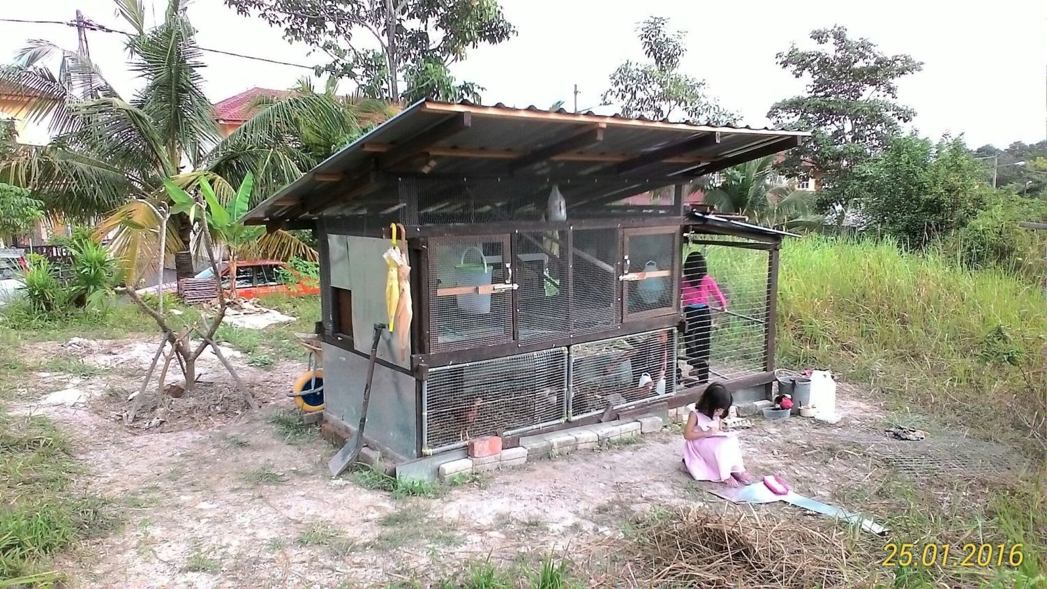 Me & son busy finishing the nesting box. Putting up all the siding cutting using 2 (9mm) pieces of 8'x3' plywood. Cost me RM100(USD24) for that 2 pieces.