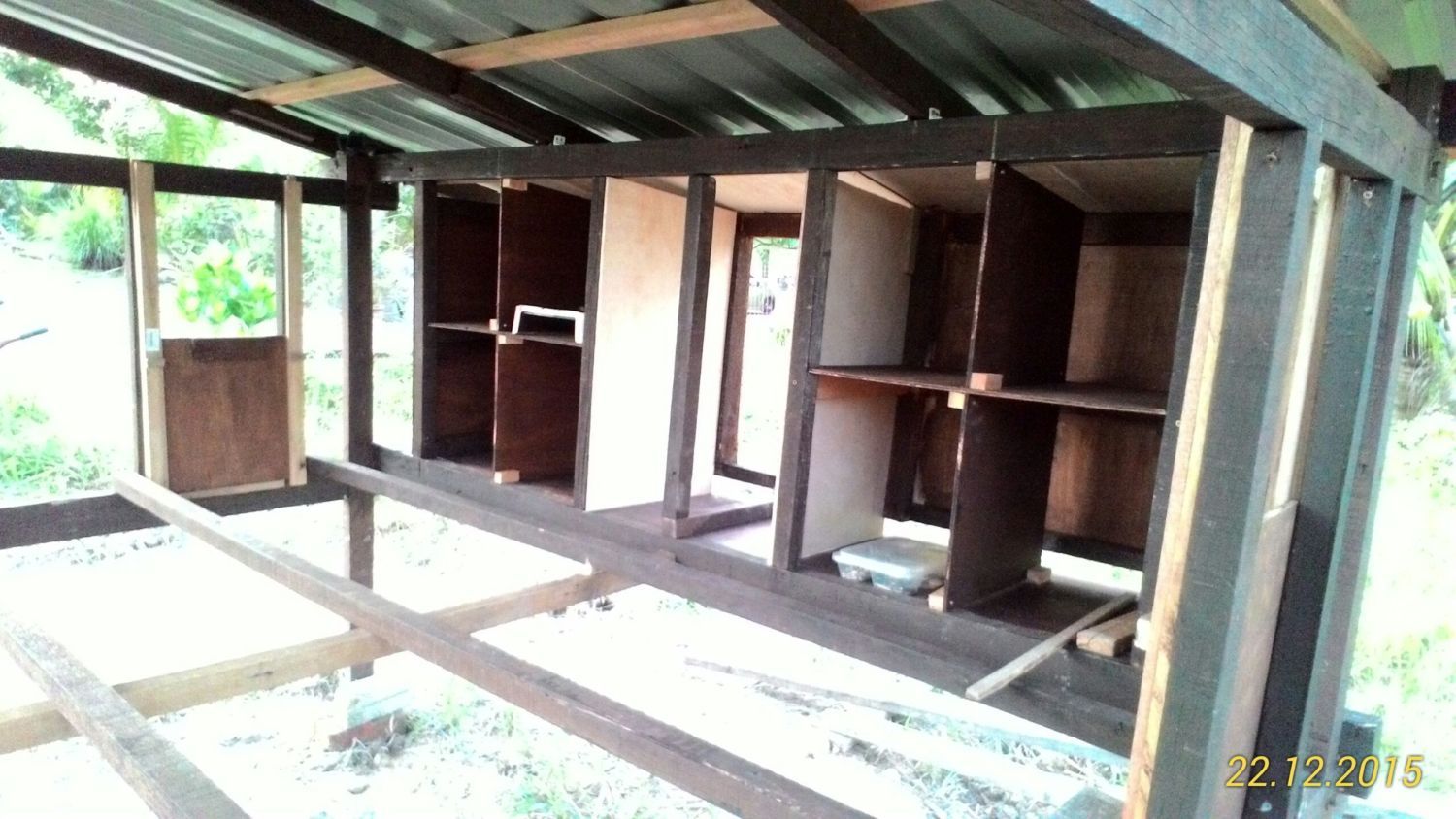 An overview of nesting box frame at the back.