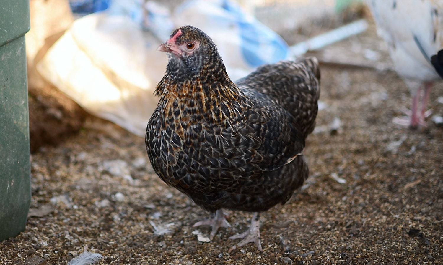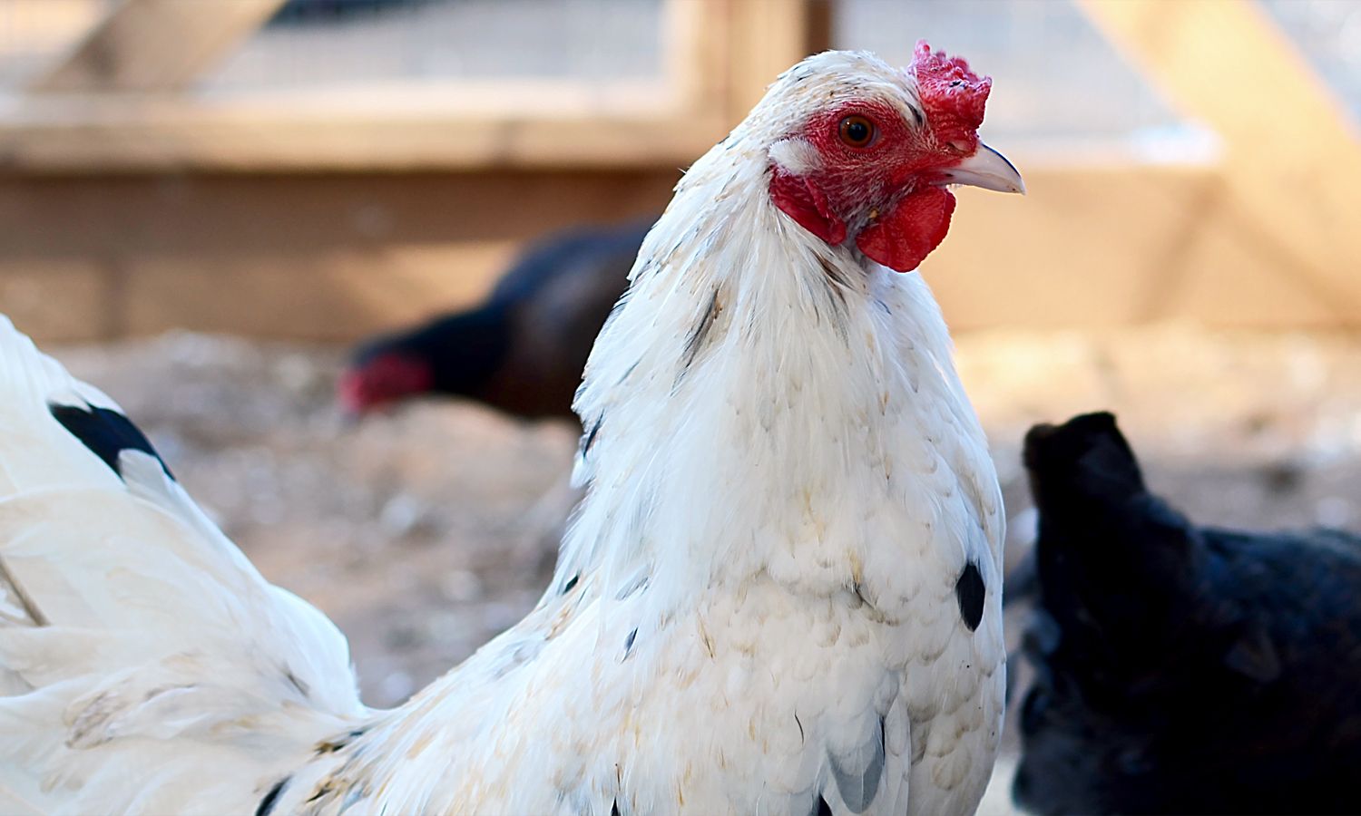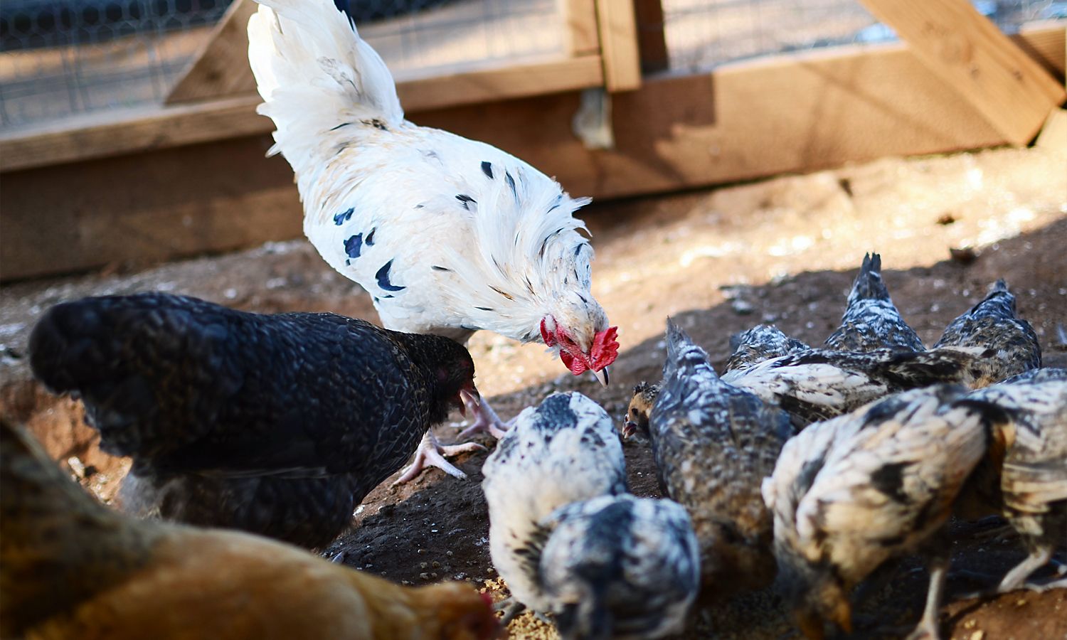 He's pretty young, but he's really serious about his roosterly duties - strutting around like he's something else. The girls roll their eyes.