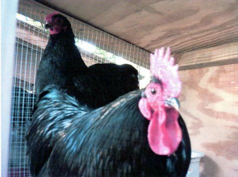 Australorp Black Created by Chickndaddy Breed Information, Comments, and Experience with breed: Bantam Black Australorps are a beautiful breed of chicken that originated in Australia with the Orpington being used in its development. They are a soft feathered bird with glossy black feathers with a beetle-green overlay. This breed has a single comb, medium in size with five points. They should have dark eyes and shanks. Australorps are also available in a large fowl as well as in blue, splash and white. Rumors talk of work being done towards a Lavender Australorp as well. Bantams being bred for show rather than utility aren't the best layers but should lay between 200-250 eggs per year. Less, however is common. Eggs are larger than the standard bantam egg and a medium to light brown in shell color. Adult males should way no more than 2.2 lbs and mature hens no more than 1.7. They are a delightful breed. Very inquisitive and darling to take care of. Males are non-aggressive and both sexes are easily handled. Birds are easily raised on wire but seem to do better on the ground. And they look gorgeous free-ranging in the evenings on a grassy lawn. |