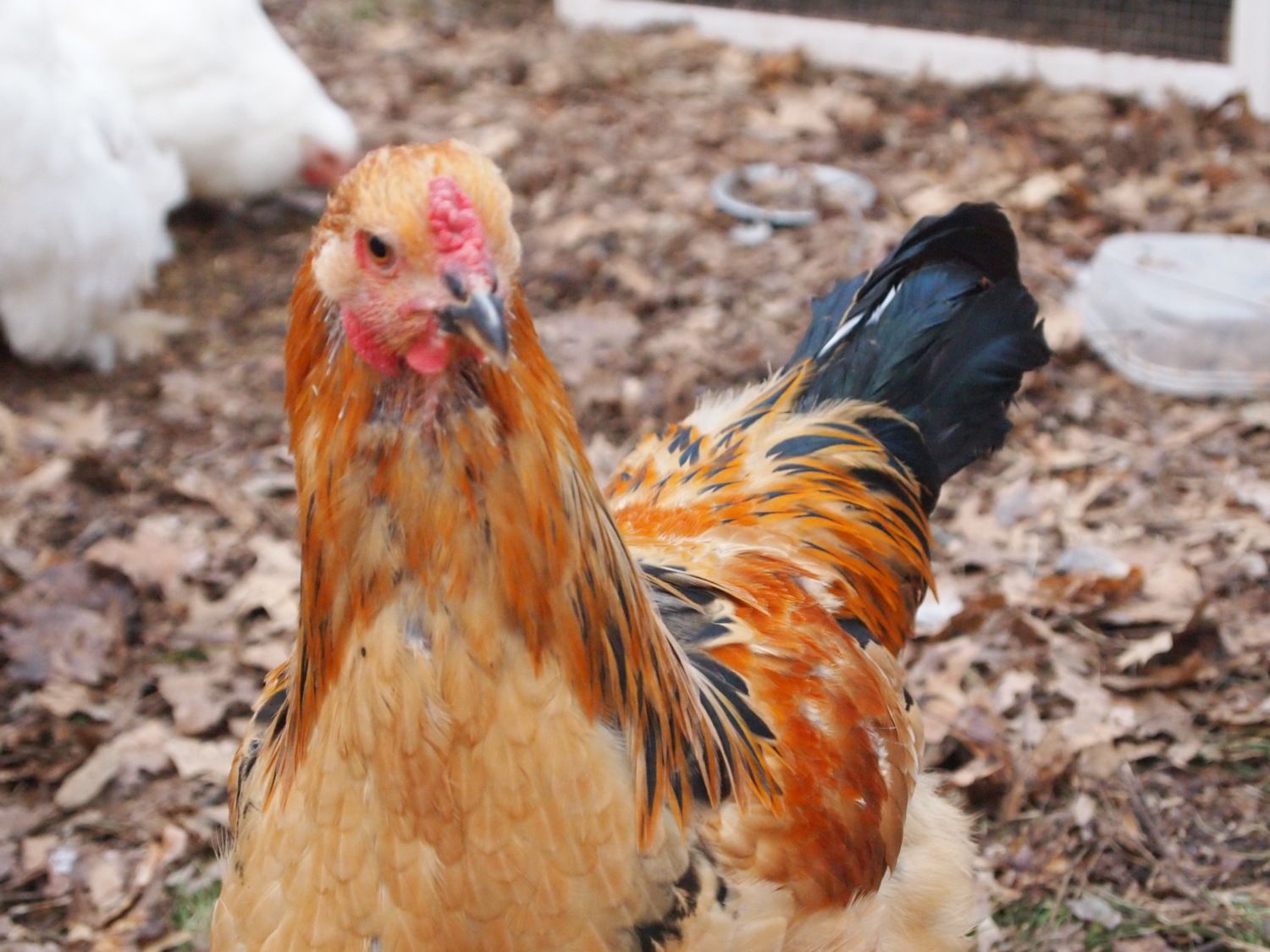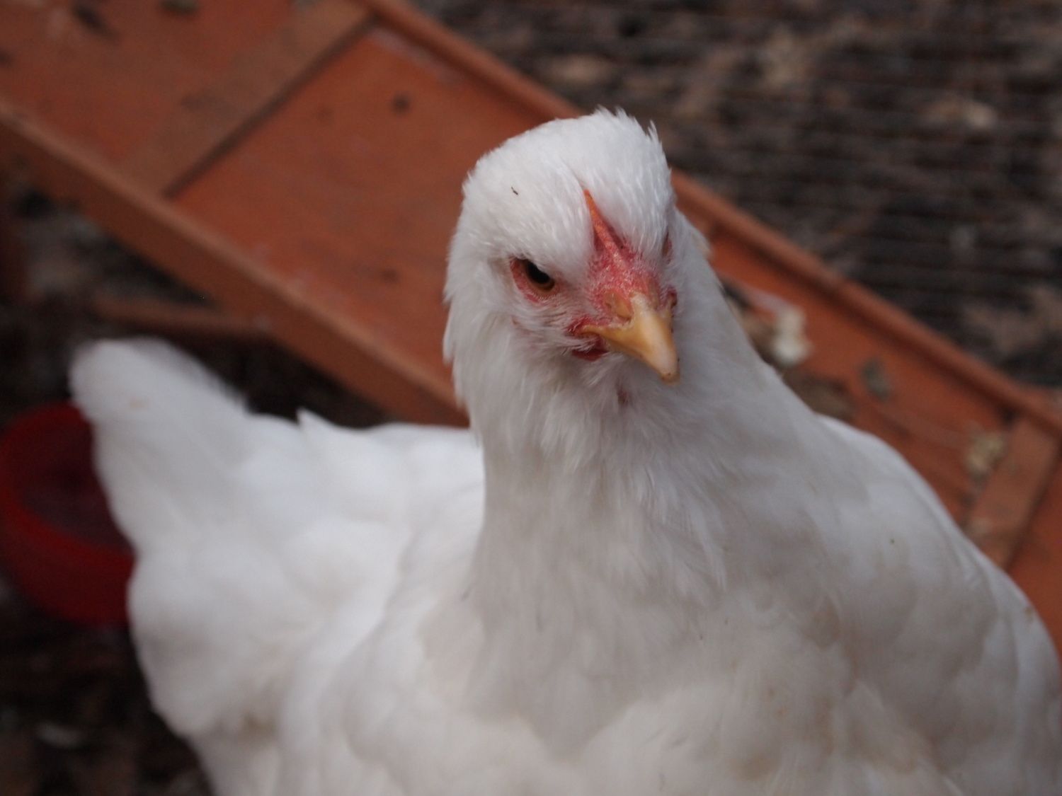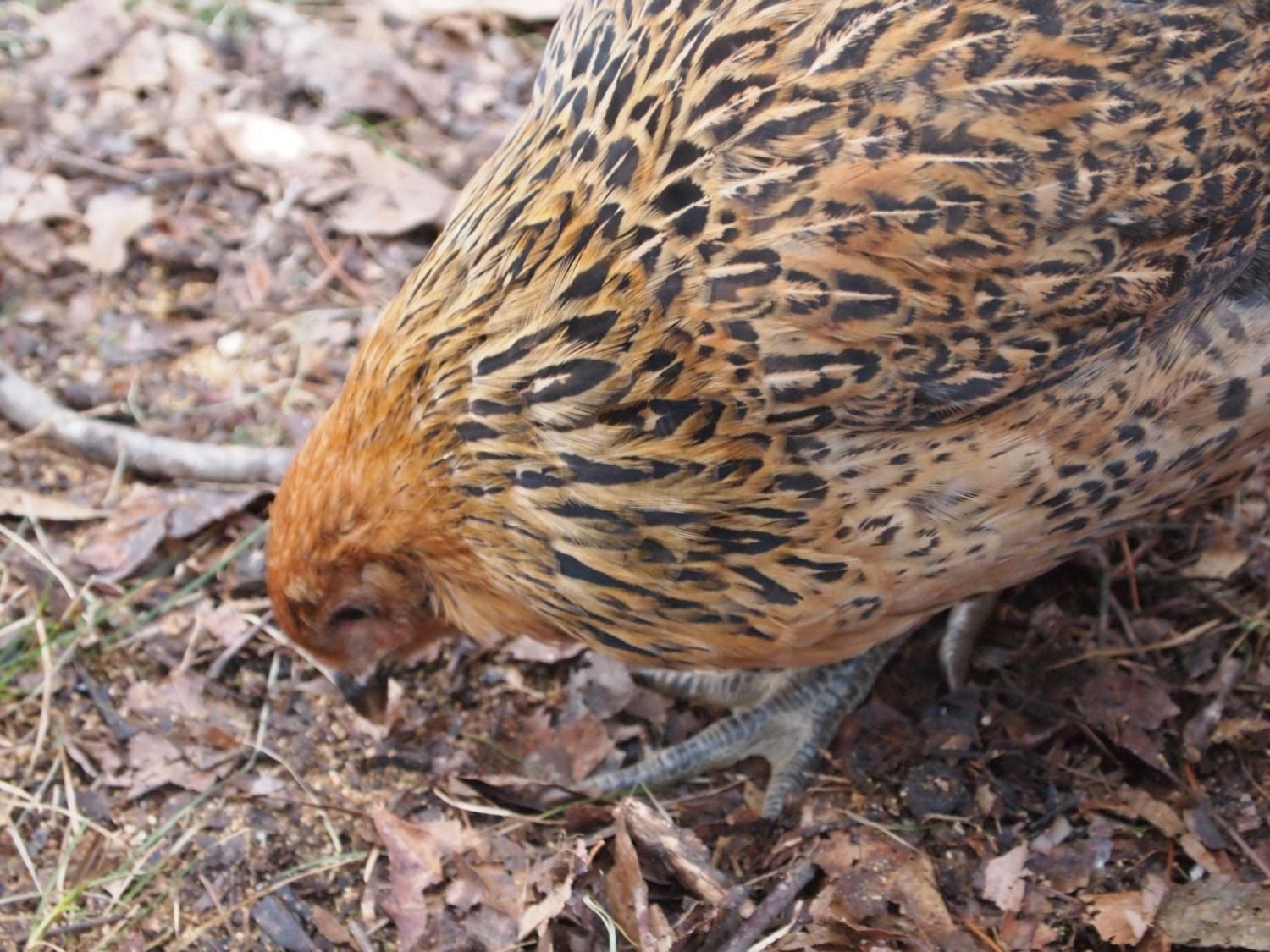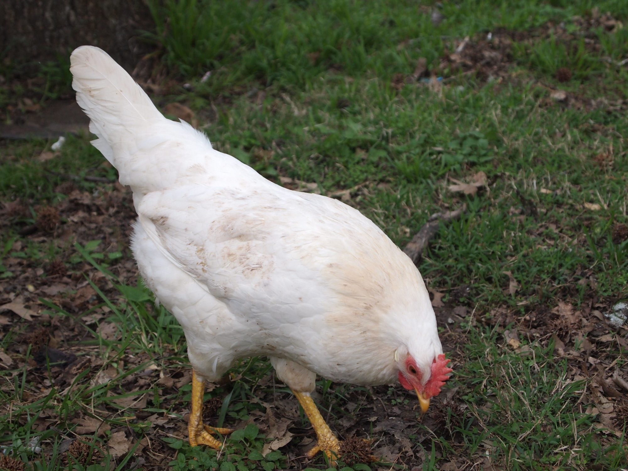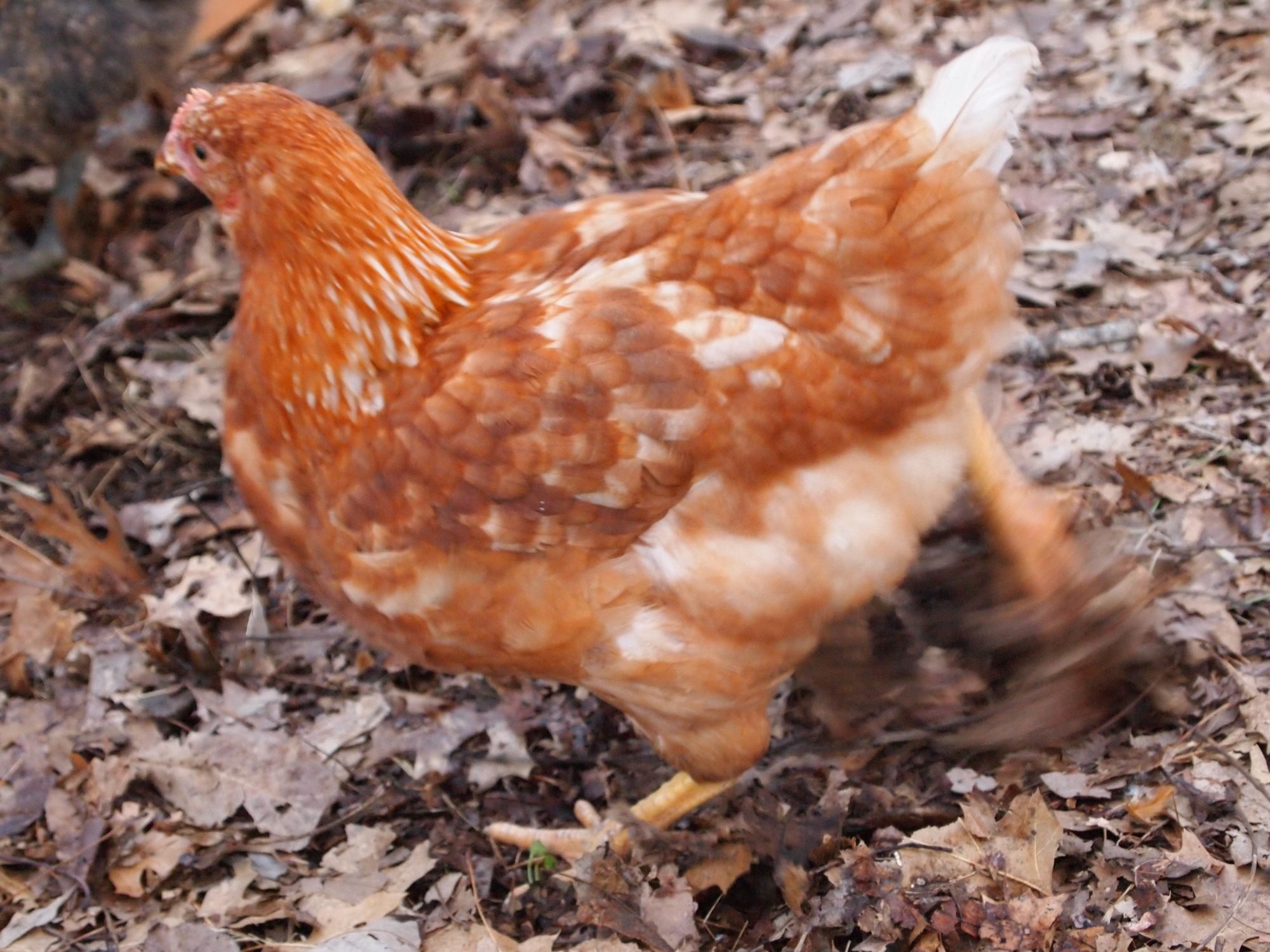 Lucy is a white leghorn about 4 months old. She is very skittish and watchful due to the fact that she is a hawk attack survivor (I was standing 3 feet away from her when it happened!!)
