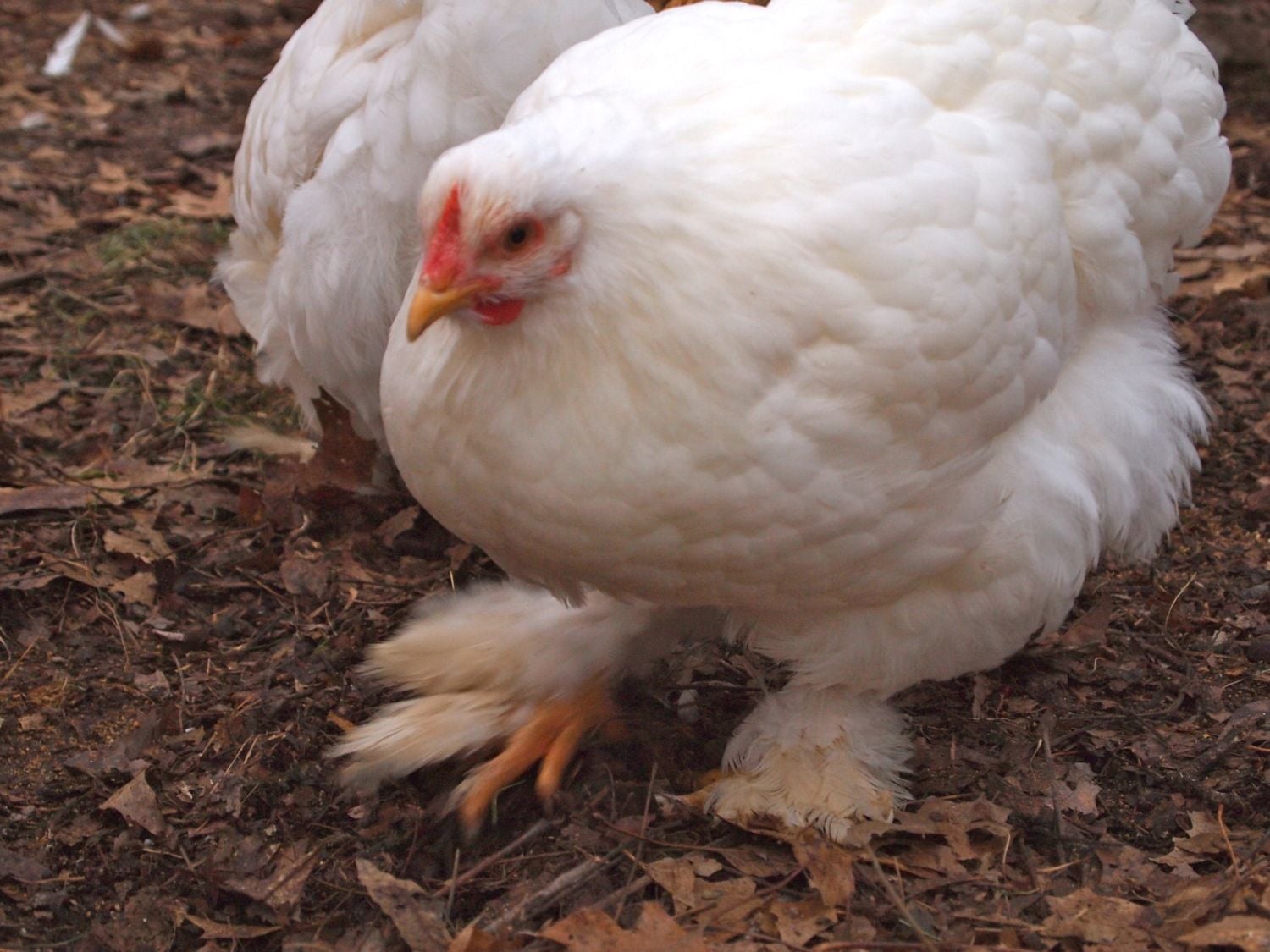 These two are white Cochins and definitely coop birds preferring not to get there feet dirty. They need to start paying rent! They are the same age as my roo at 5 months. They have the fluffiest butts I have ever seen and run like little dinosaurs. (Yes, they are both girls)