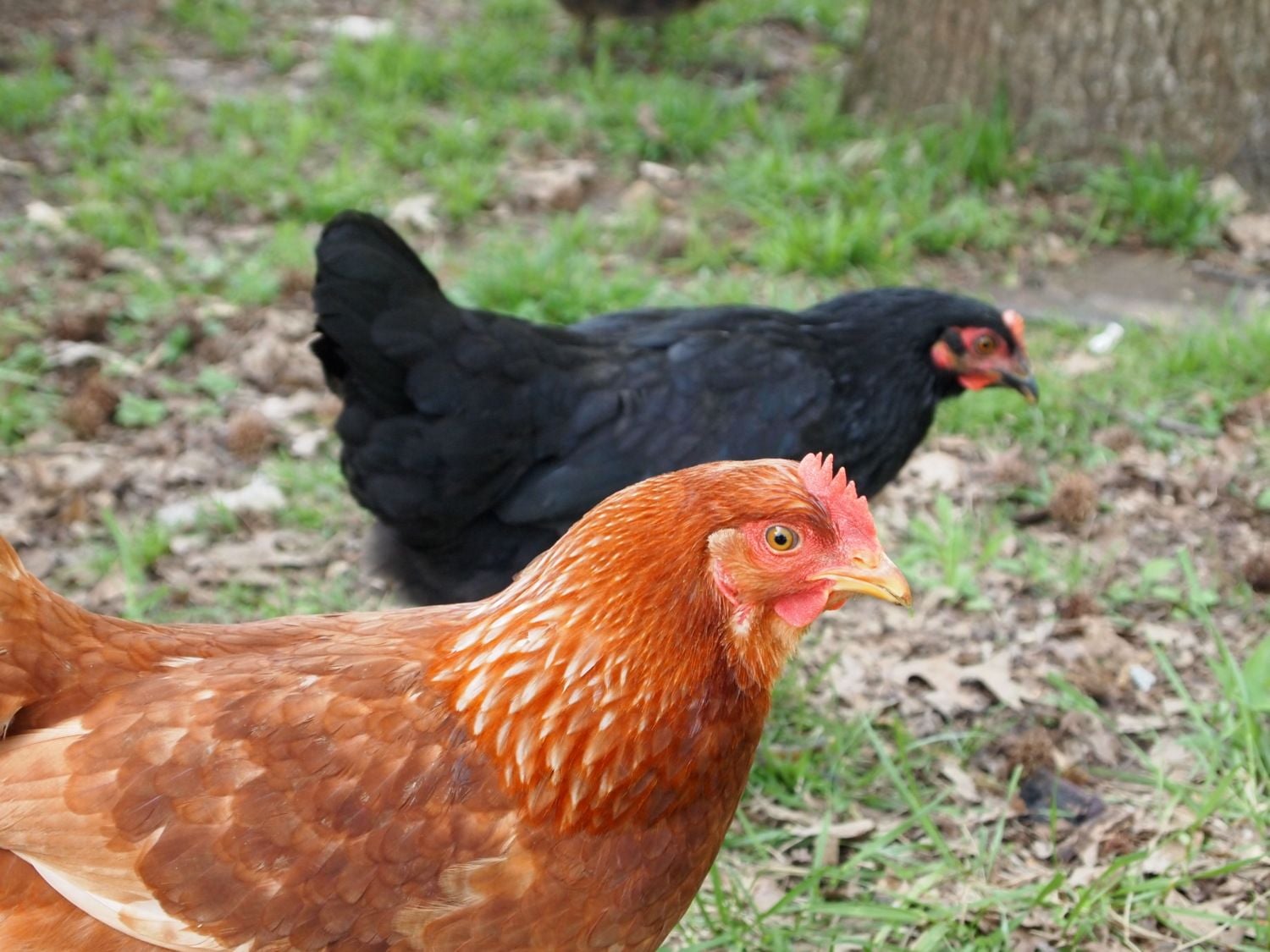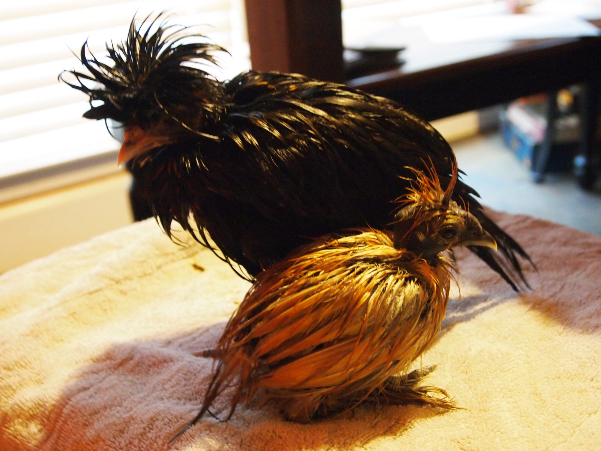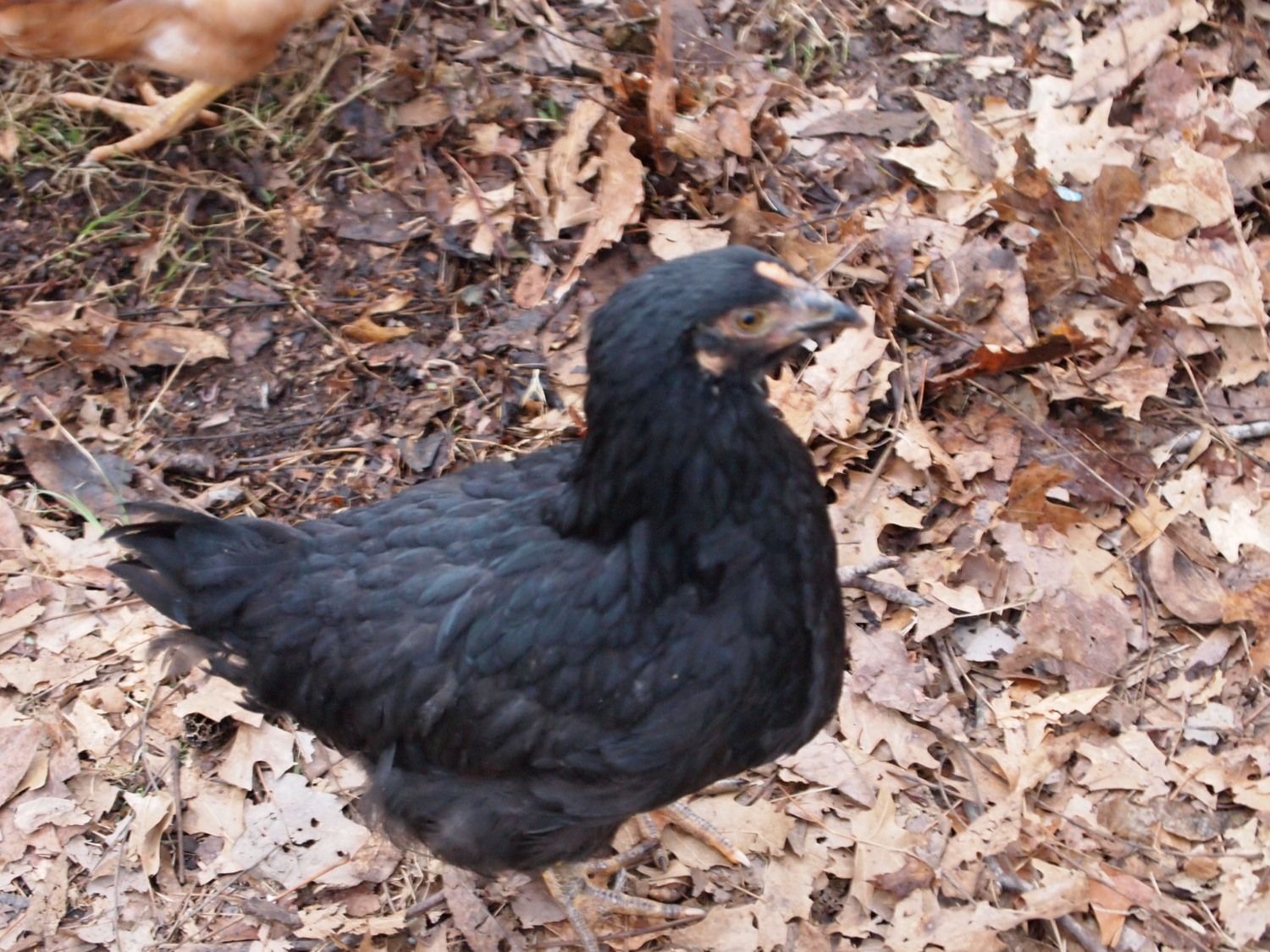One of these two is an extra... but I am very glad to have them both! Agnes has been affectionately nicknamed perchy-bird for her ability to perch on people for as long as you will have her. Pia is the smallest in my flock. Both birds are black stars and 4 months old.