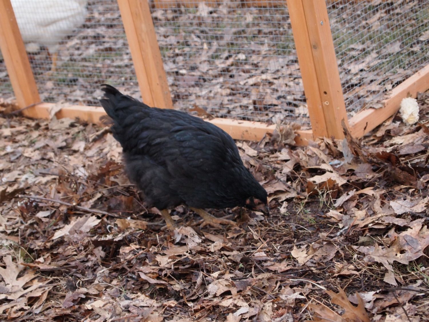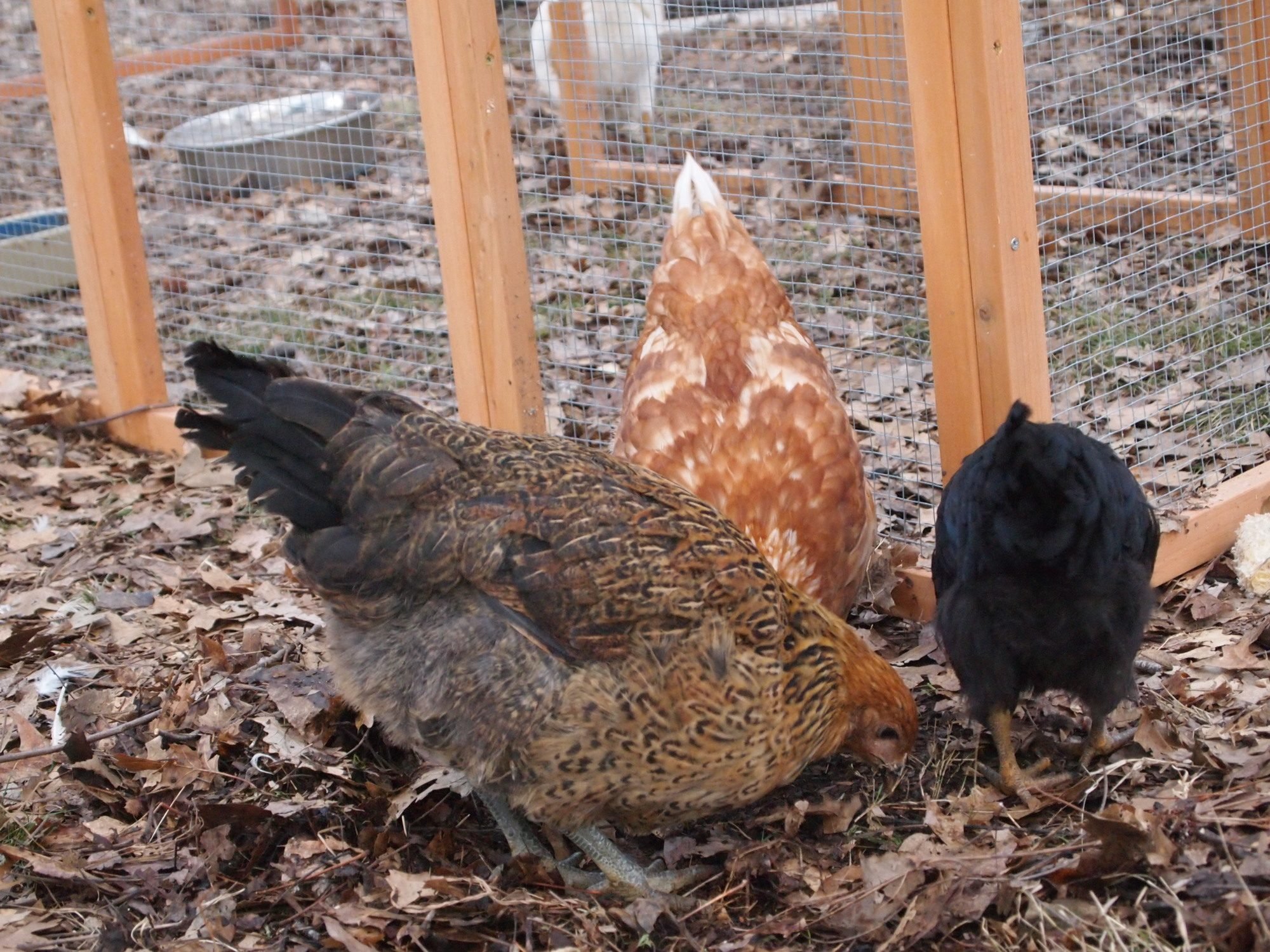 Astrid enjoys herding the chickens around, running back and forth between two mini flocks (Newer birds and older birds)
