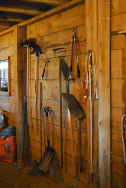 My moms boyfriend used old horseshoes and nails to build us this tool rack