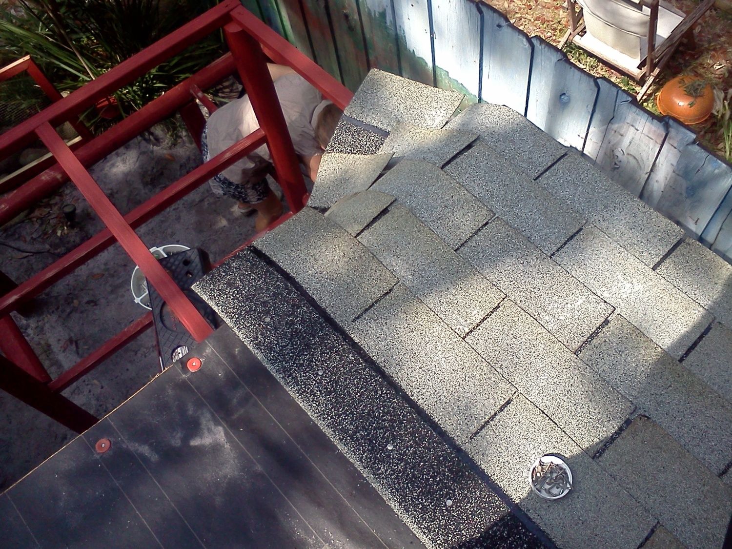 The roof was finished with tar paper and shingles left over from our last reroof,