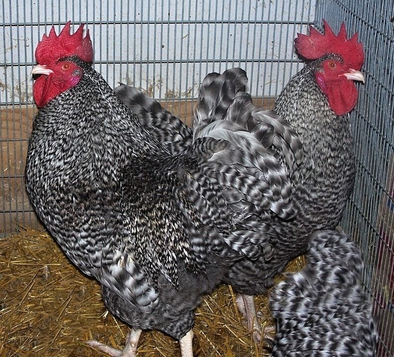 A couple of Cuckoo Marans boys and some Cuckoo eggs from the girls.
