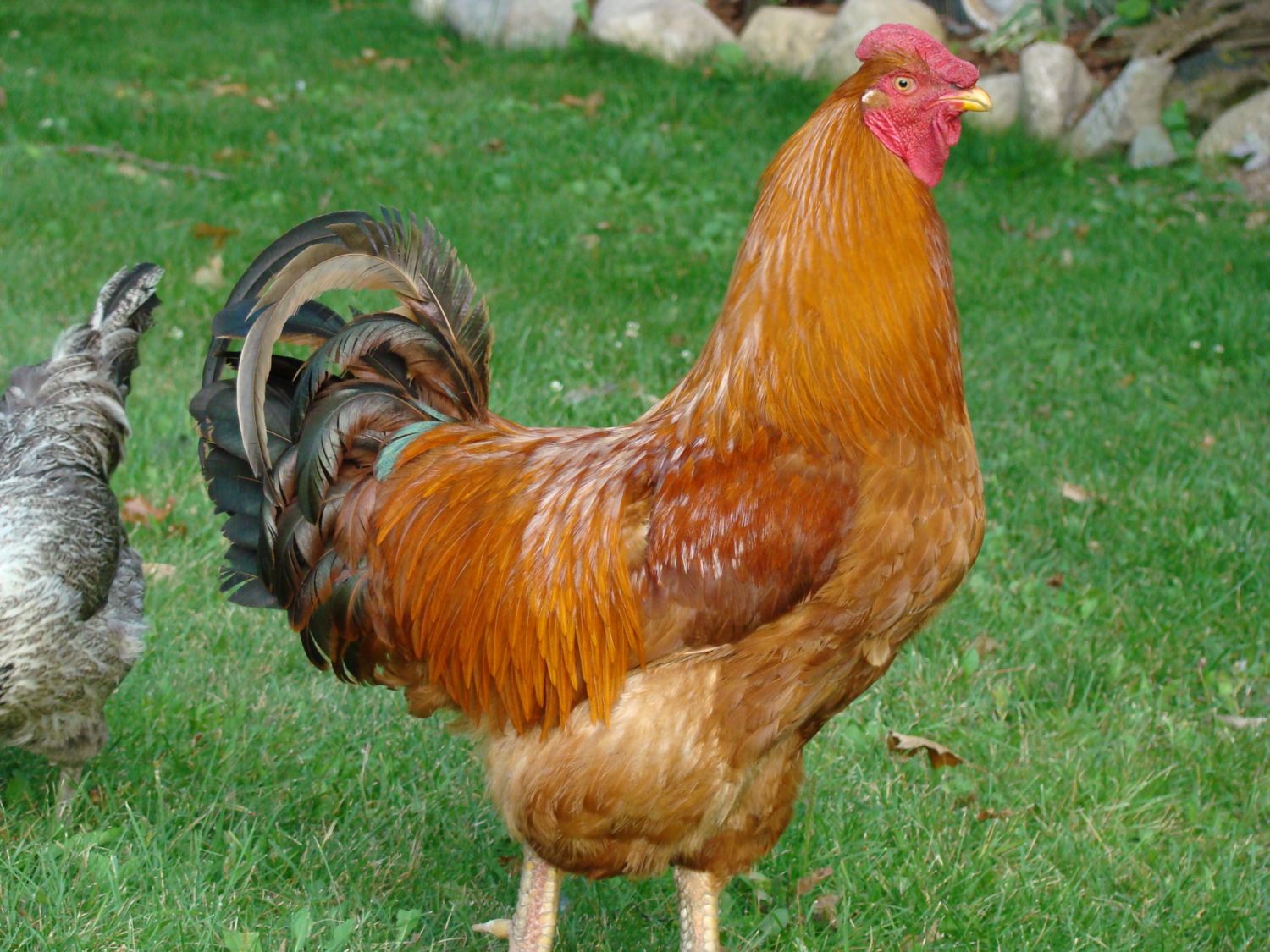 Roger aka the BIG Tootsie. --A 4 year old New Hampshire Rooster. Keeping hens safe when he is not taking his Old Man naps.