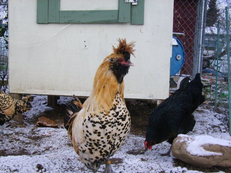 I have found Brabanters to be a very friendly breed as well as an excellent egg layer. However, they can be flighty unless handled regularly and are somewhat difficult to really tame. They are active foragers, and are not as vulnerable to predators while ranging as many other crested fowl are. Their crest is tight and points forward, which does not block their vision. Along with their crest they have muffs and a beard. {I would like to thank HandH Poultry for providing info for this page}