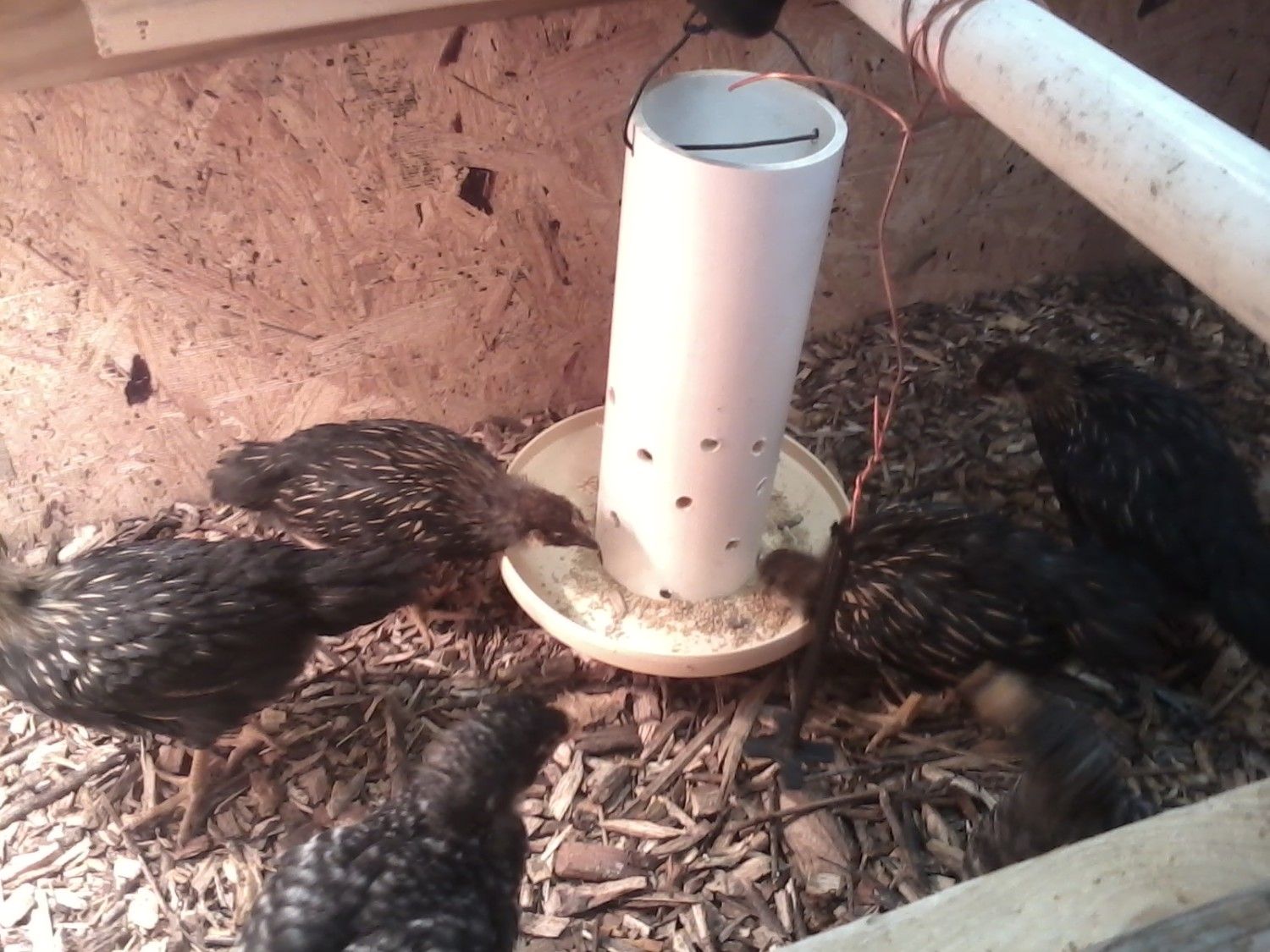 Here is the first feeder I made for them while they where in the brooder. Same principle on a smaller scale