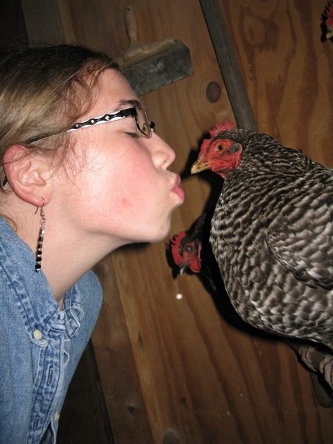 She was my best girl. I could talk to her and feel like she understood. So many times... She was so much more than just a chicken. She was one of my best friends. And she put up with a lot. I'd kiss her right on the beak (until we got the cow); I'd hold her on my head; I'd take her sledding with me -- all the way down the hill; and she put up with me taking pictures of her while she was molting. She was very embarrassed. But she was the best girl I've ever had.