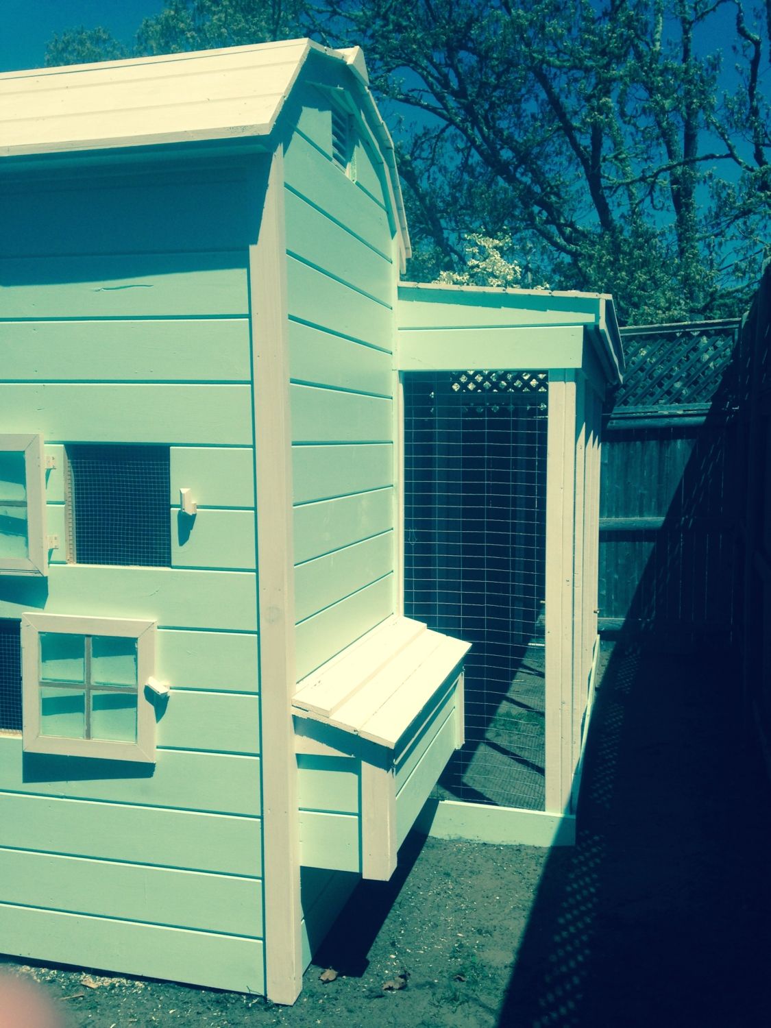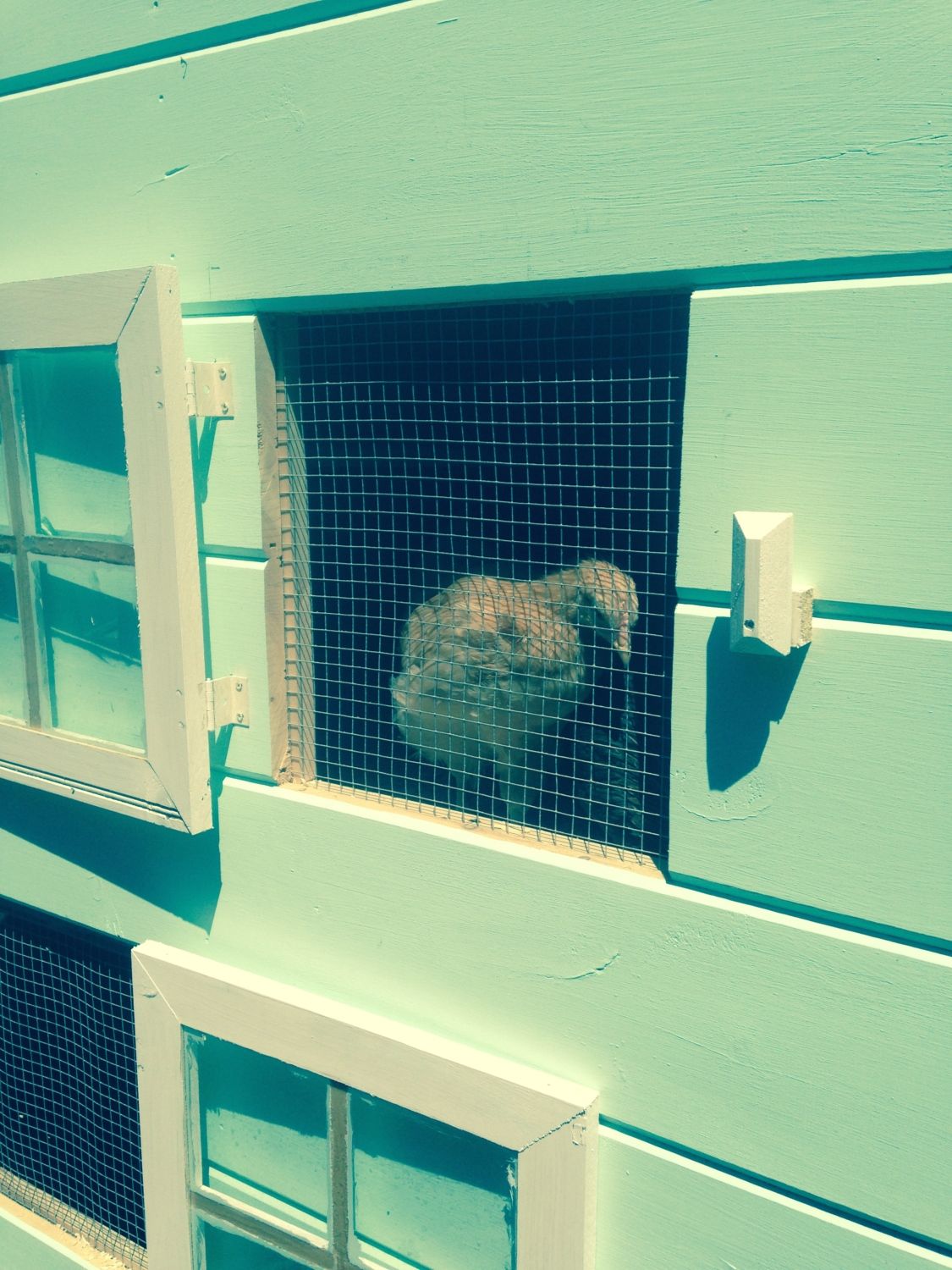 This is the outside of the coop, on the side there are two windows that are lined with hardware cloth so we can open them for some extra ventilation on hot days.