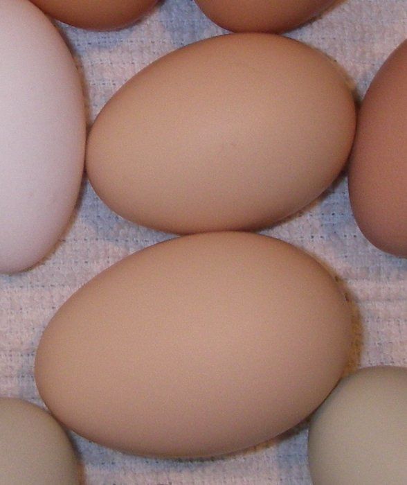 Also known as Buff Catalana, or Catalana del Prat Leonada, or just Prat. Eggs vary from white to light cream or light pinkish. Body from light buff to golden-red, tail iridescent greenish-black. Legs not feathered, slate to greenish; earlobes white, wattles red. Comb single with 6 points, erect in males, can be floppy in females. Chicks buff, with or without faint chipmunk markings. Hardy, active, good foragers. Hens are said to be unlikely to go broody, but one of my two did so within a few months of first laying. The other one went broody for the first time at age 2 1/2, and seems to be a great mother so far (just a few days after hatch). Said to be the best meat bird of the Mediterranean breeds. My two Catalana hens are not really friendly to humans, but also are not aggressive. Addition from chicksandweeds: My buff catalanas, even though I could not spend a whole lot of time with them as your chicks, are turning out to be quite friendly after a shy phase and by 5 1/2 months come running looking for treats. This is also the time I got the first egg. If you are looking for a dual purpose breed, some of the cockerels are huge. | ||||