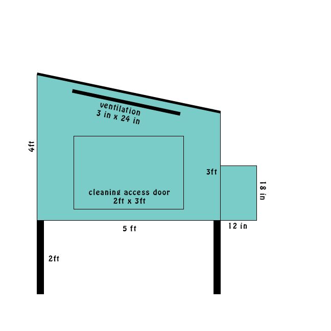 side view with large cleaning access door