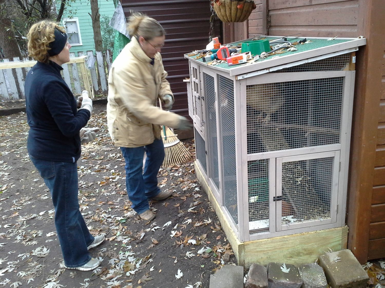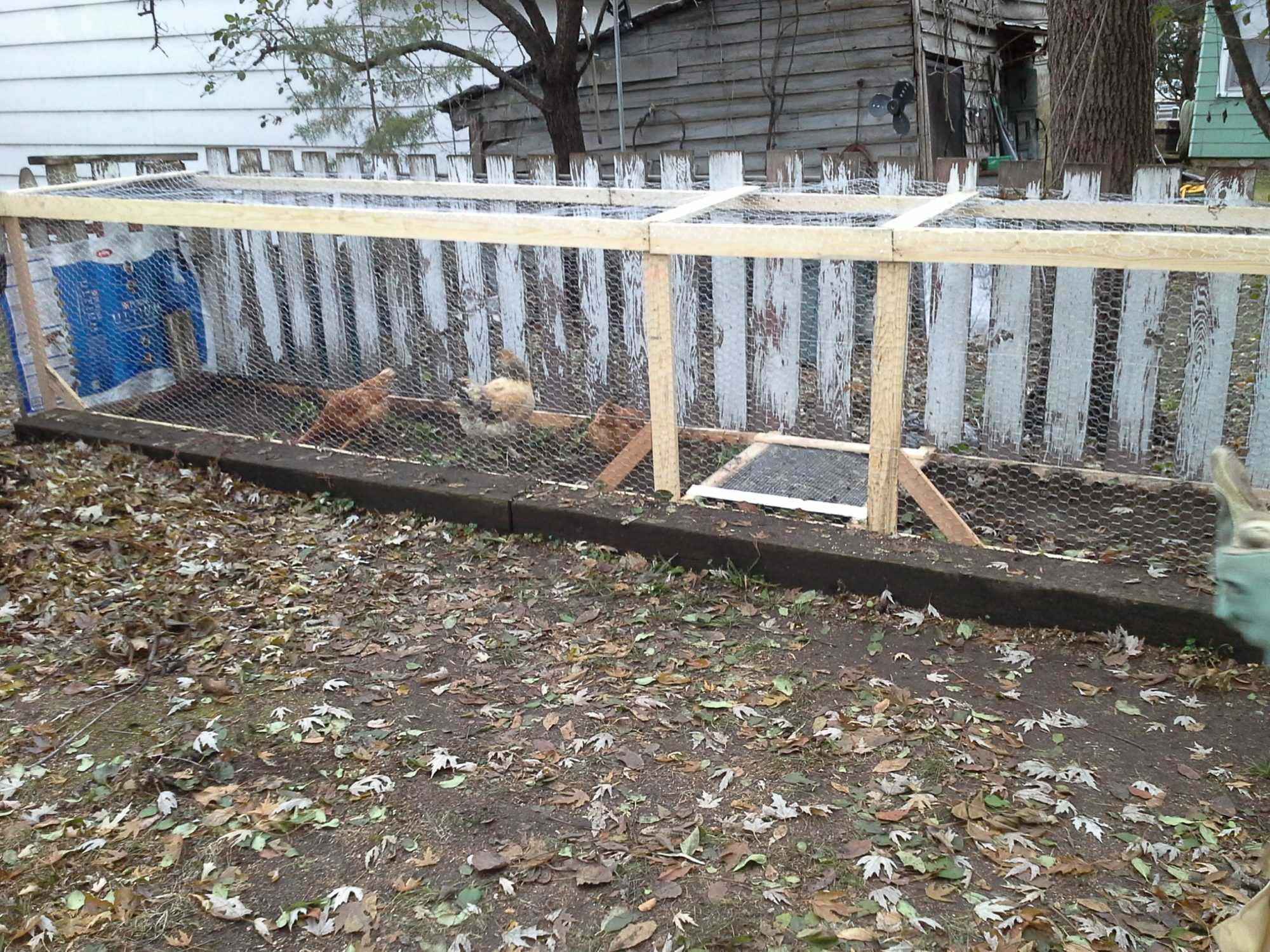 Then chicken math struck. 3 hens became 6. Now we had 2 prefab coops in the backyard. Neither was attached to the run, so chicken herding was a twice daily event, letting each group out in shifts. There has GOT to be a better way to do this.
