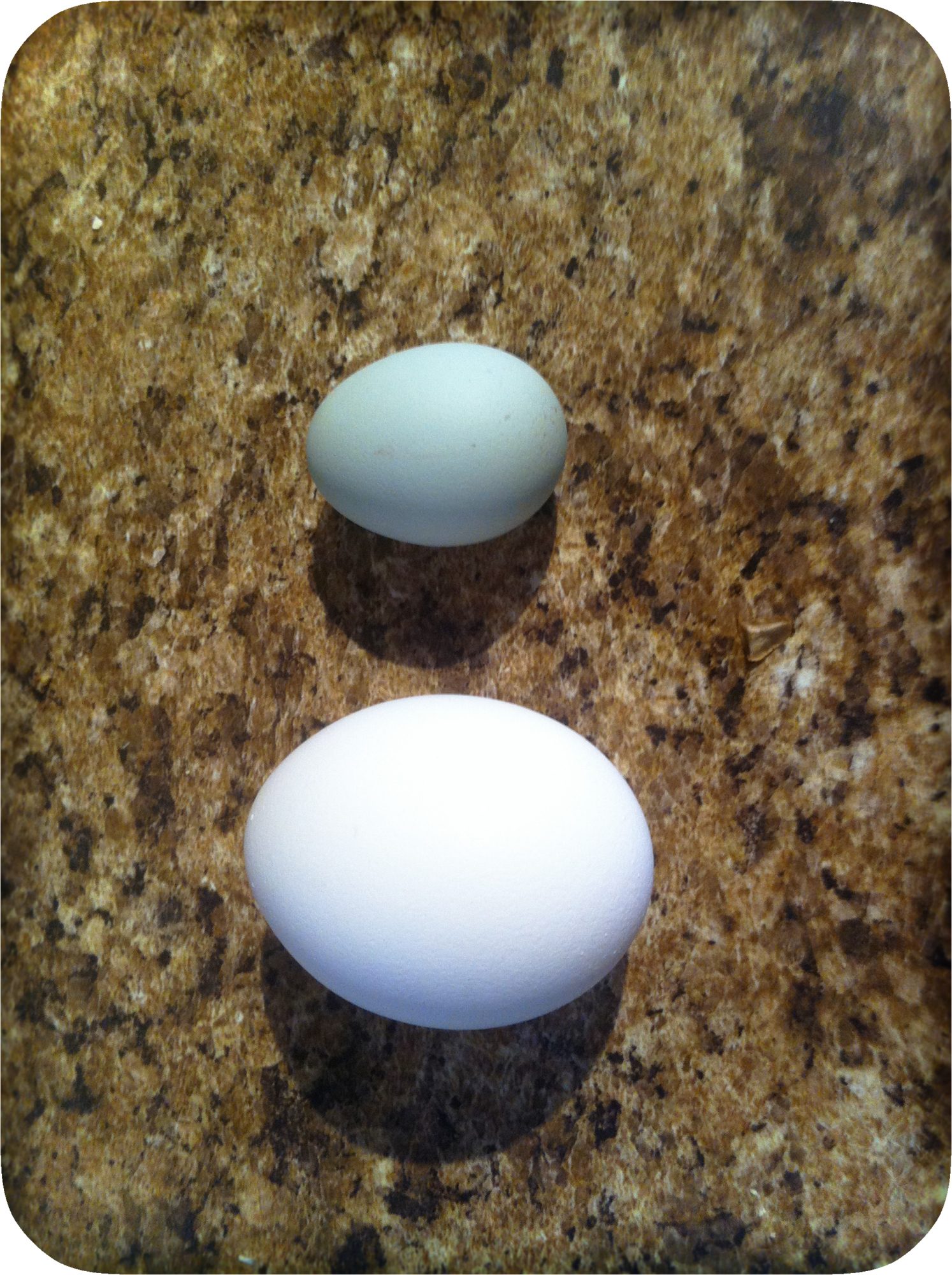 As though to allay my fears about all the girls having issues with laying, Marie surprised us with her first egg the day after Rosie's. We found it in the nesting box, pretty as you please.