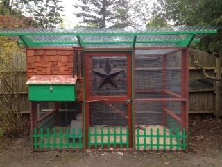 Well, here it is. We decided to take the plunge over the winter, did our research, and away we went! After buying our 6 adorable little peepers from the local feed store (2 Rhode Island Reds, 2 California Gray Leghorns, 2 Araucanas) and putting them in the brooder, we got serious about building our coop. We researched many designs and had our heart set on purchasing an Eglu Cube by Omlet, but just couldn't find any in our area. Buying a new one was cost prohibitive for us, so we decided to build a coop. We stumbled upon the Garden Coop design and fell in love with it, so we bought the plans and set forth to make it our own. We followed the basic design, but made several modifications along the way to make it fit our specifications. Some of the key mods that we made were: