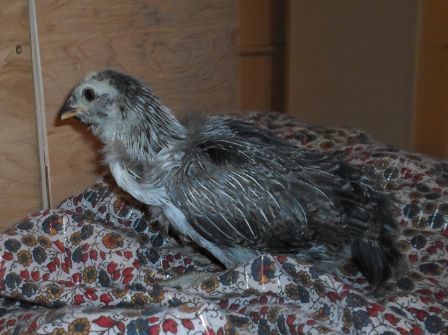 This is my extremely attitudinal easter egger pullet, Natty. Her namesake is Natty Gann from the movie "The Journey of Natty Gann" - another female with a big attitude. Don't get me wrong, I adore Natty...she's a very spunky little thing, she's just not friendly toward humans. She's great with other chickens (even very tiny chicks).