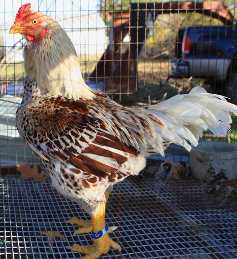 The WLR color is a strikingly stunning color variation in the Cornish with single white lacing and a deep chestnut red. The body type is the same as any LF Cornish should be, although good examples are hard to find they are easier to aquire than the more rare solid white.