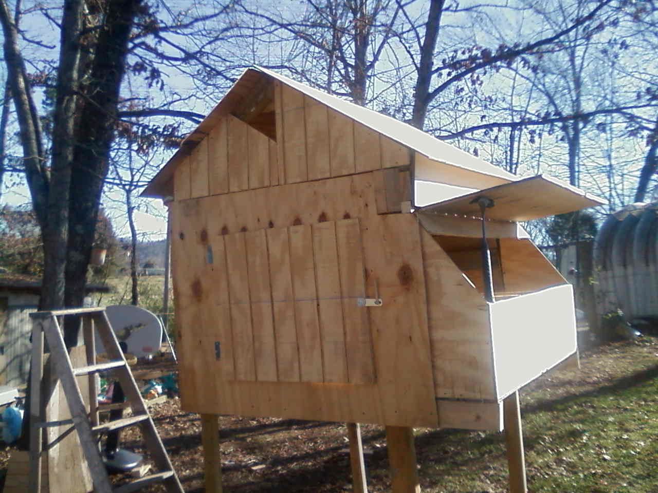 I've been slowly building on my coop and runs. here's what i got so far and it hasnt cost me much of nothin. got all the scrap material give to me. had to buy the hinges. got 35.00 in the whole thing. coop and runs.