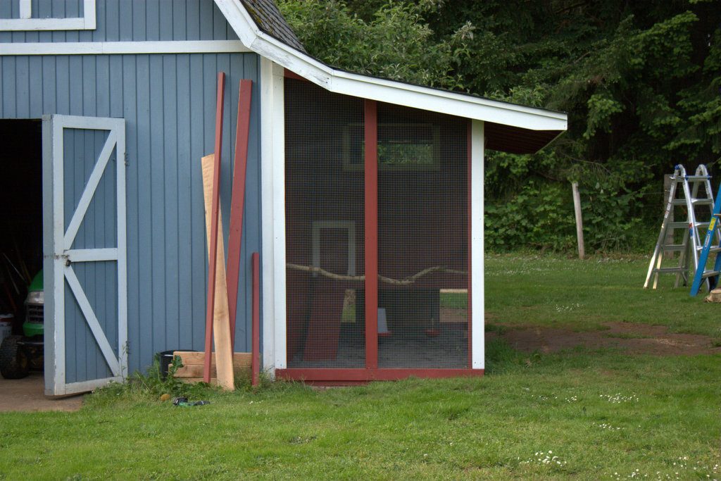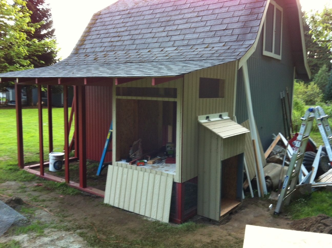 I've been planning to build a coop for a couple years now and remember seeing the Wichita Cabin Coop as well as some others here that inspired my design. I have a small shed in the back yard and figured I'd hang a coop off the side of it.