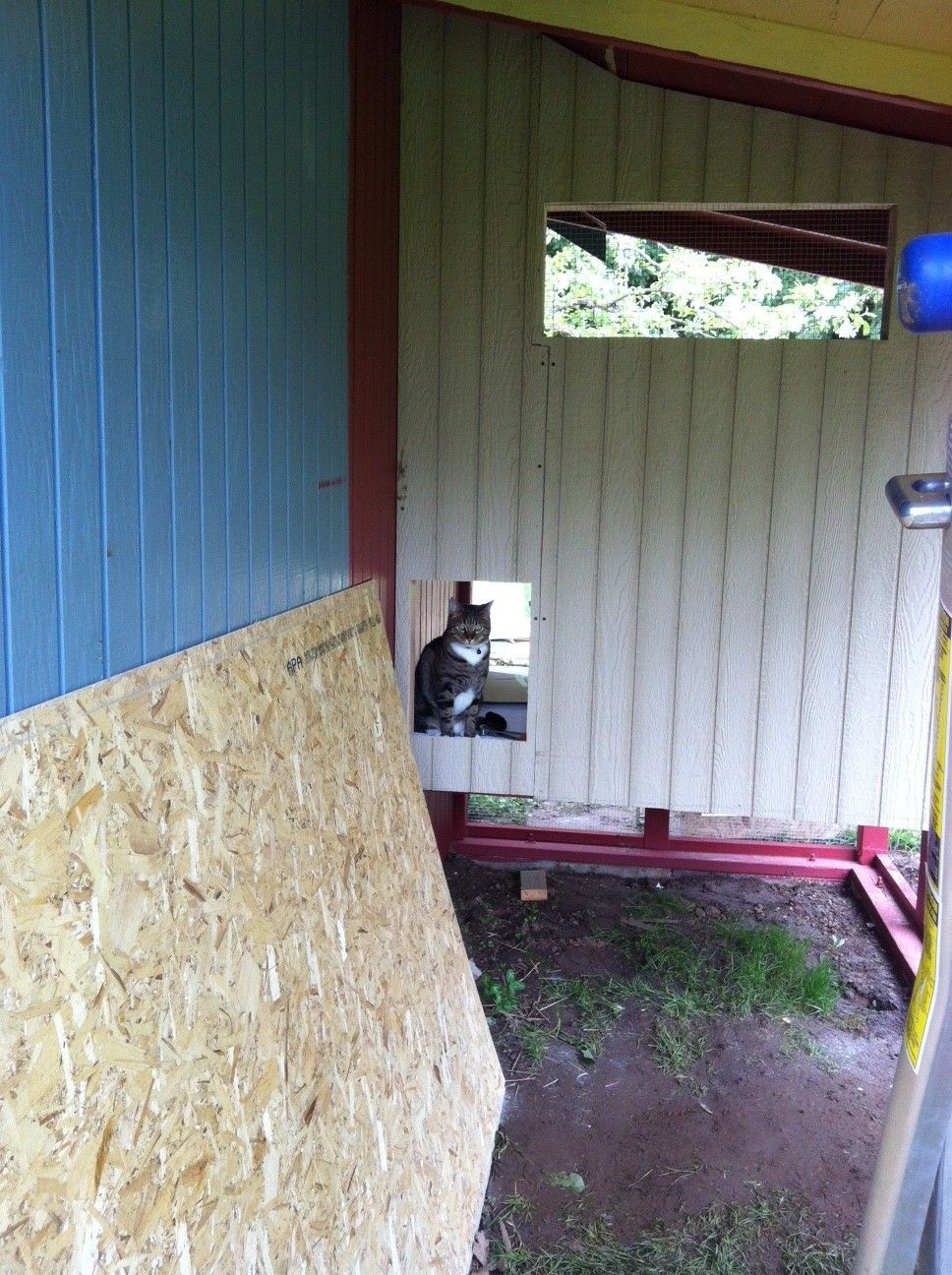 I framed in a small cabinet under the nest boxes. I'm sure it will come in handy for something.