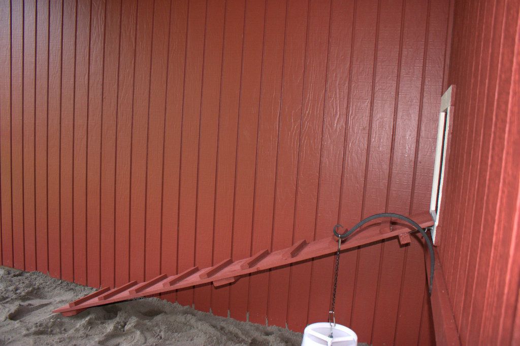 I also added a small shelf next to the nest boxes. Originally I was going to place a water bucket there but ended up running water from a faucet to an automatic bowl. I figure the shelf will come in handy for the egg basket or whatever.