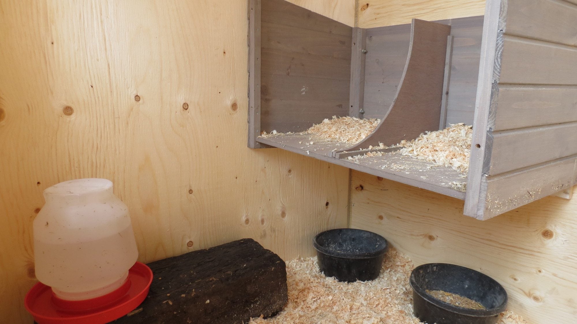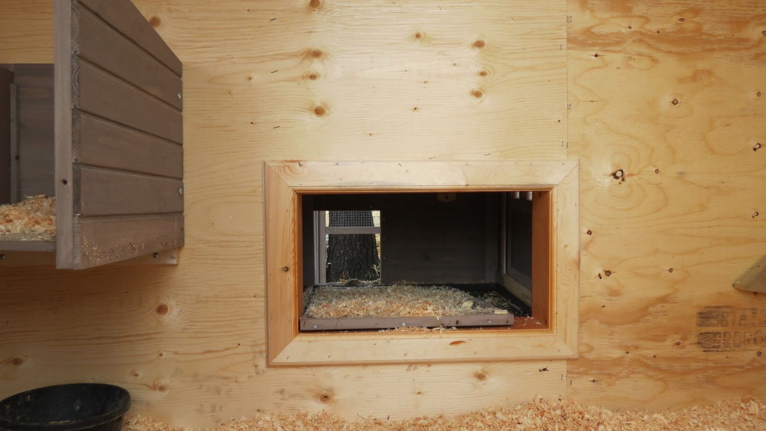 Our new chicken coop old coop acts as an entrance nesting box from old coop roosting bars roof from old nesting box is a ramp between old and new