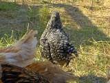 Dominique They have a soft contrast barring of white and black, giving them a more mottled appearance than the single combed Barred Rock. Created by Cetawin Breed Information, Comments, and Experience with breed: The breed originated in the United Kingdom but is known as the oldest breed in America. It is a good forager, hardy, excellent layer of brown eggs. The are known for being able to lay in marginal conditions. It is also a docile and friendly bird lending it to being a great breed for backyard flocks and an excellent pet. With the introduction of the fancy breeds, its popularity waned and in the 1970's it went on the critical list of the American Livestock Breeds Conservancy. However, the Dominique is making a comeback and has been upgraded to the Watch list. The Dominique is often confused with another barred breed, the Barred Rock or Barred Plymouth Rock. There are distinguishable differences between the two breeds. The Dominique has a rose comb and the Barred Rock has a single comb. The Barred Rocks' barring is more distinct and even whereas the Dominiques' may be a little off-white and a little off-black causing it to have a more mottled appearance than the Barred Rock. Dominique roosters can be quite aggressive while the hens generally are docile, friendly and quiet birds. |