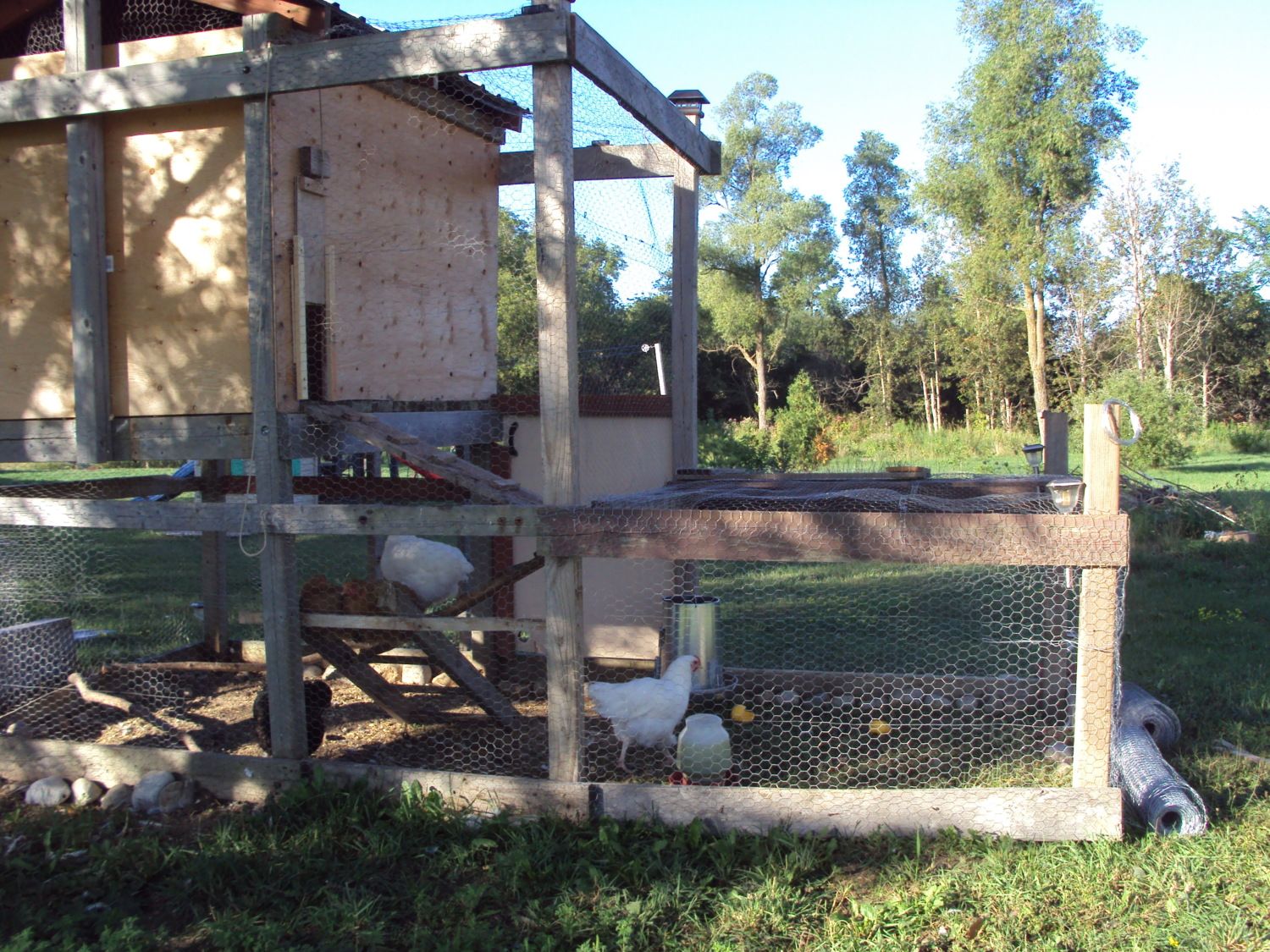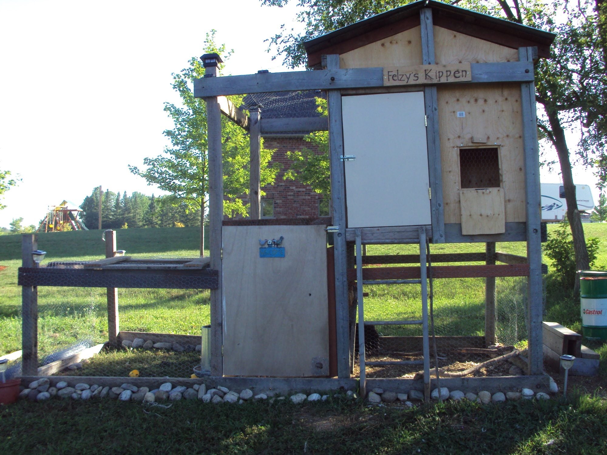 this was the chicken coop in the spring of 2012. then in the fall we realized that we needed to make the run bigger so idecided that it needed to be moved around because we can only build on two sides. my dad and a coupld of my uncles turned it around for me.