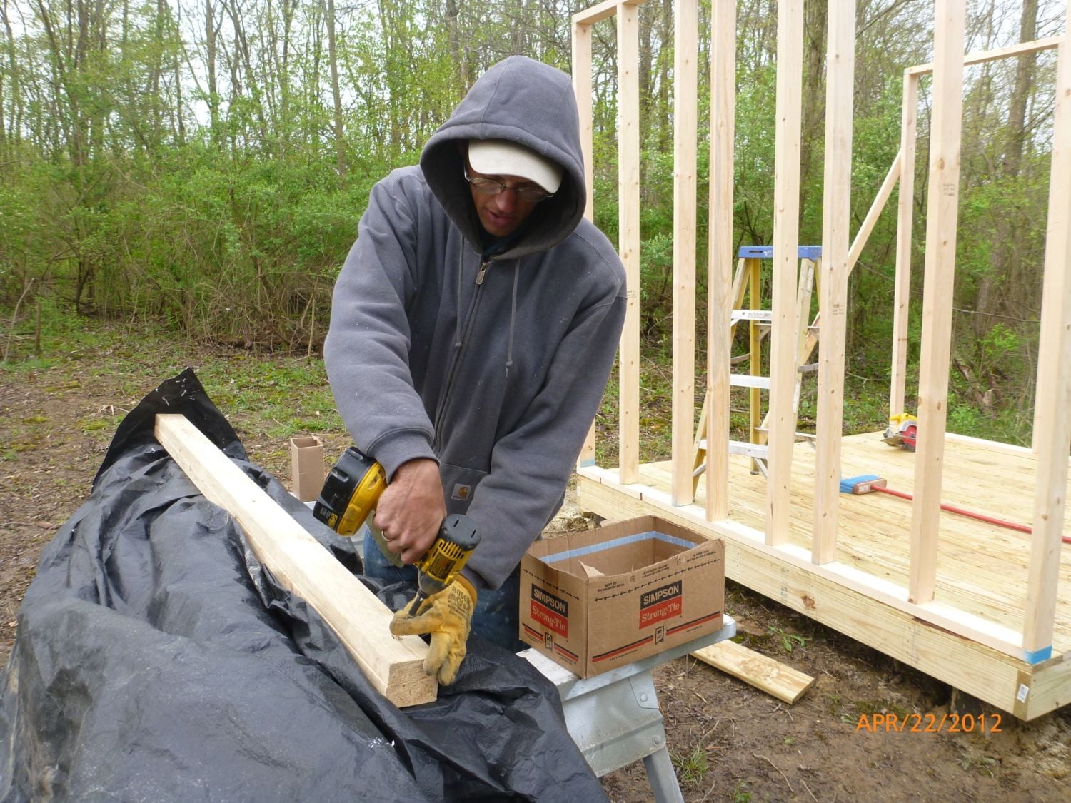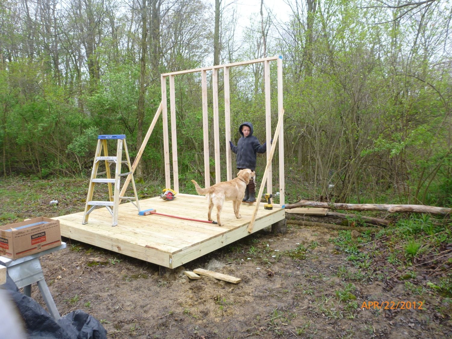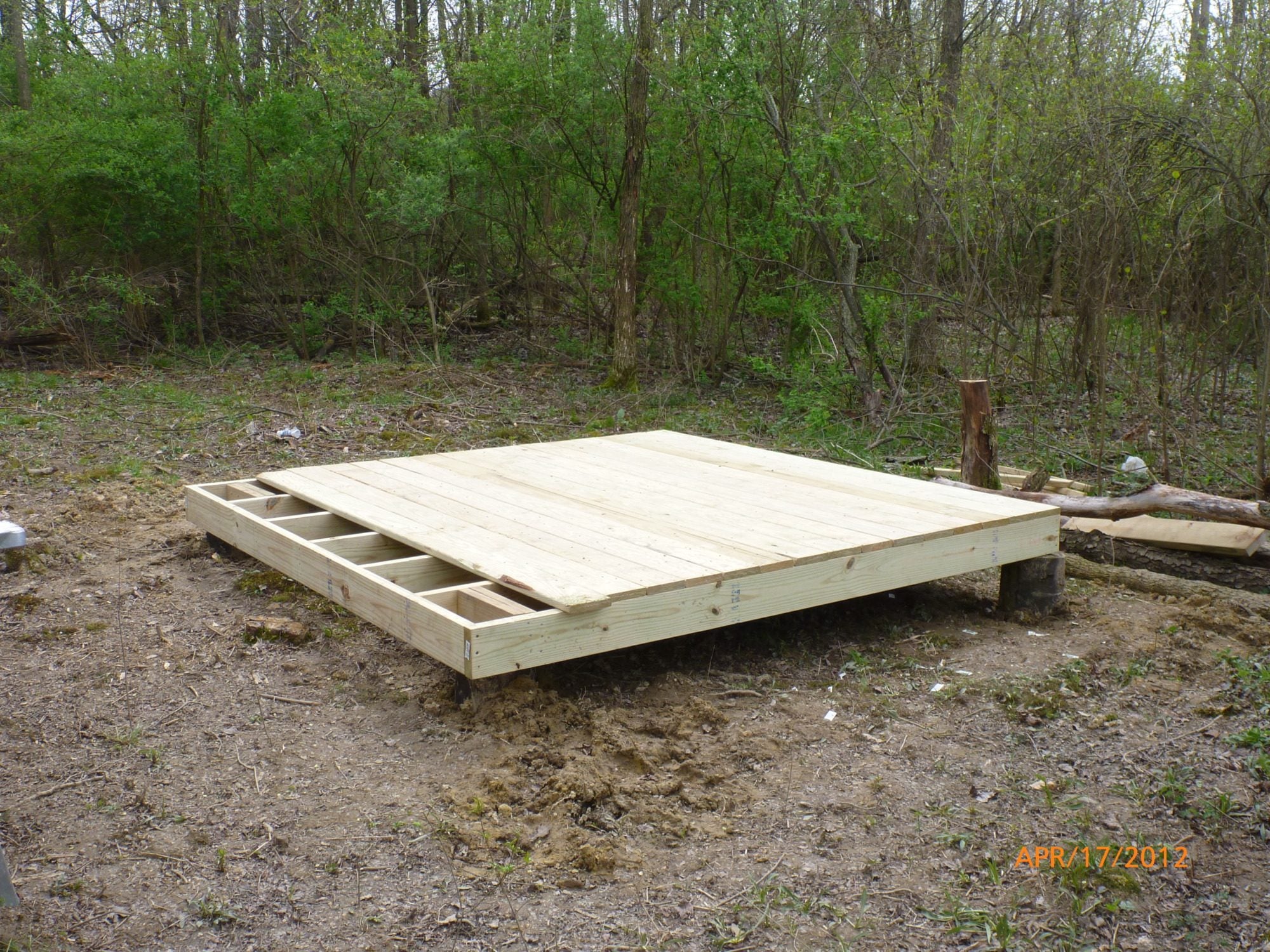 foundation - we actually used old telephone pole to sink into the ground with cement to build our foundation