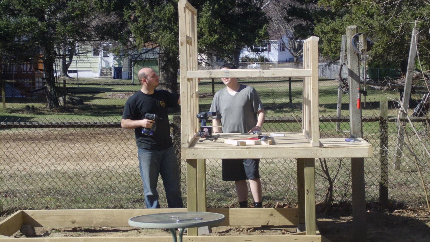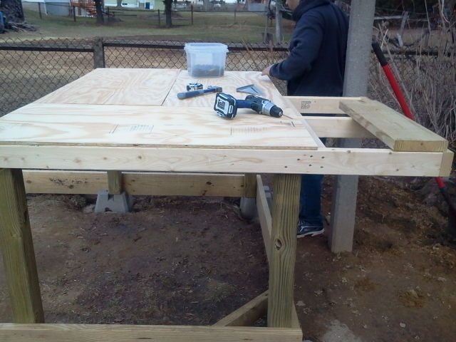 The frame went up pretty fast. Took the two just a few afternoons before Hubby had to take off for work.