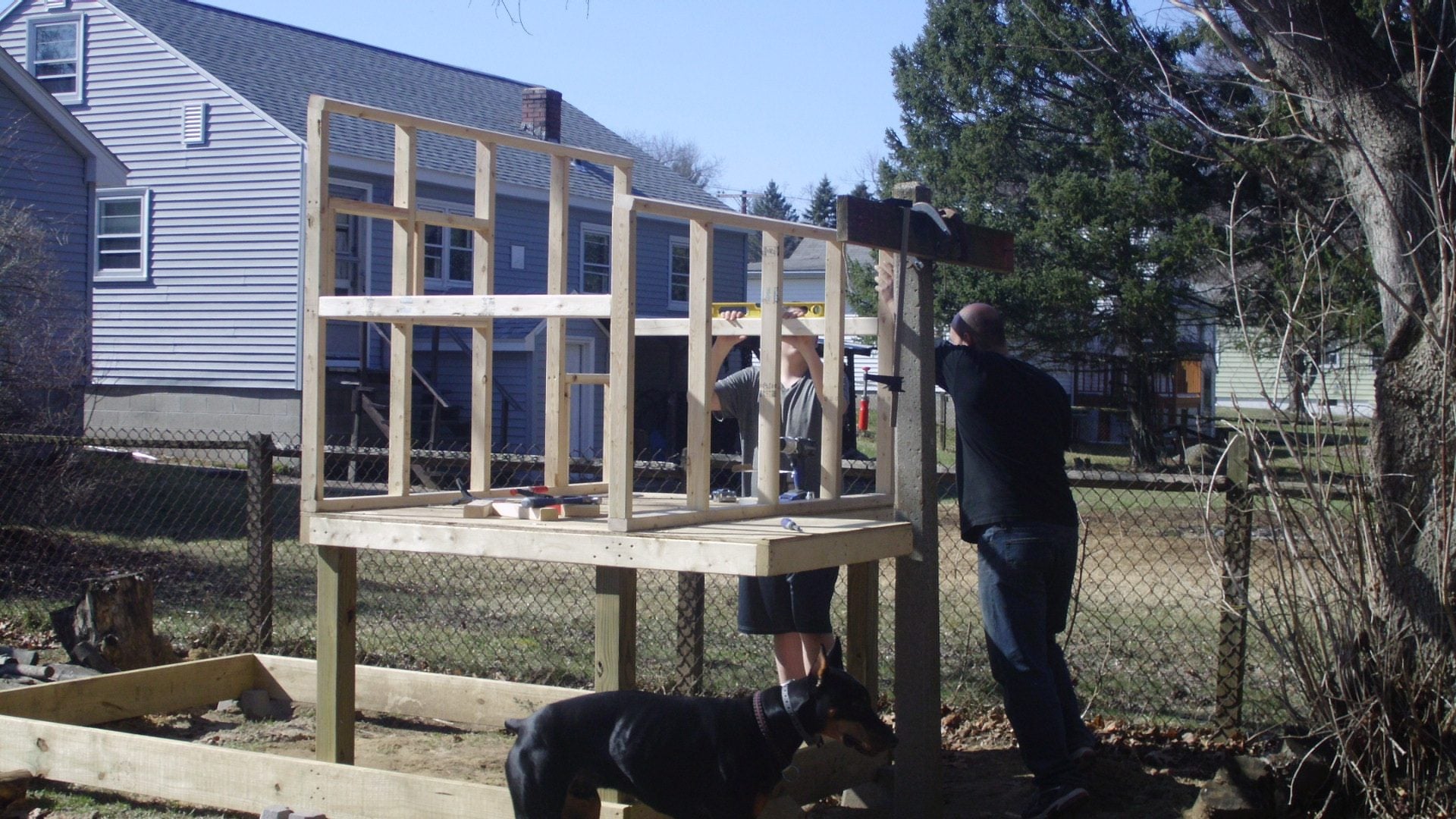 We are currently working on a wintertime roof for the run. One that we can put on during the winter and take off once the snow is gone.