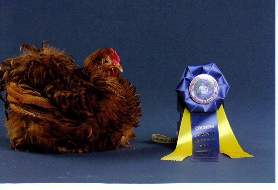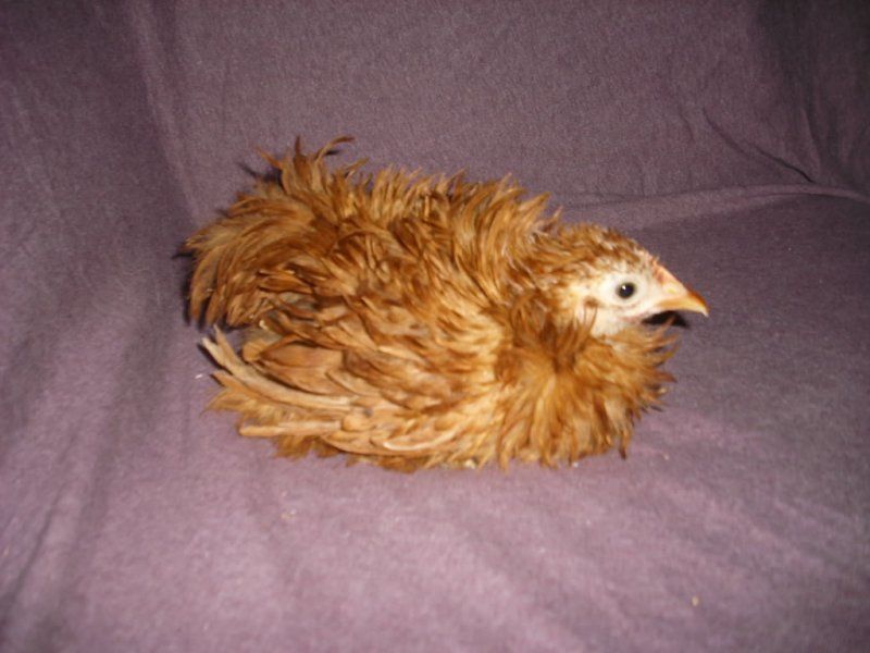 The Frizzle is a breed that carries a gene that makes their feathers curl outward and up, It looks as if they are in the wind storm. The first Frizzle that i have heard off is the Cochin Frizzle, But now they recognize different breeds of Frizzles. I have the Cochin Bantam Frizzle and the Polish Standard Frizzle. I did have a Frizzle Silkie, she was sooo sweet. Frizzles feathers are so soft. A full frizzled bird should have all feathers frizzling out except a few on the wing feathers. To get the right texture and right amount of frizzling, They should be bred as follows- Frizzled to a non frizzled. The hatch rate is 50 50. You will get some chicks that frizzle and some that don't. And if you bred a frizzle with a frizzle som of the chicks will end up with cracked feathering, And they wont be as smooth.