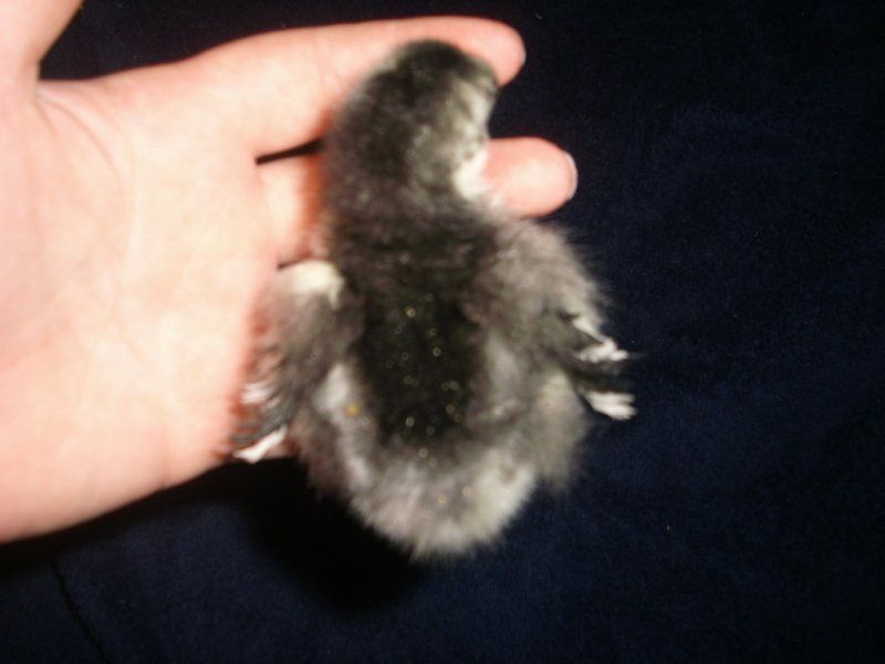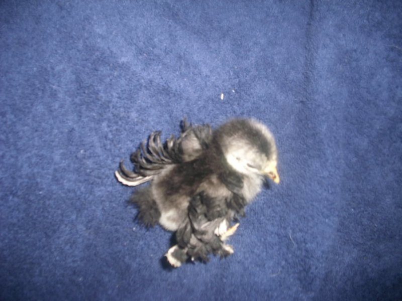 This chick is only 2 days old, and you can see the frizzling starting. Here is a black frizzle cochin bantam.