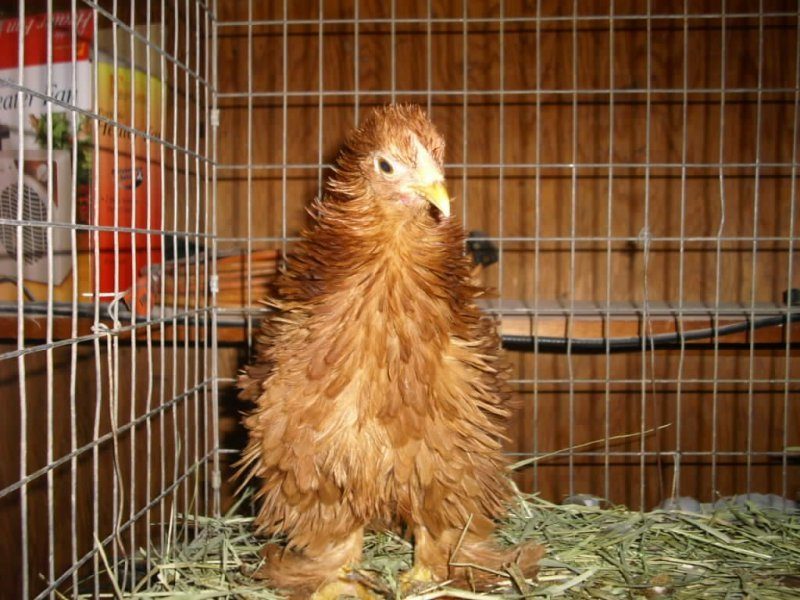 This is a Pure Red Frizzle Cochin Bantam Pullet