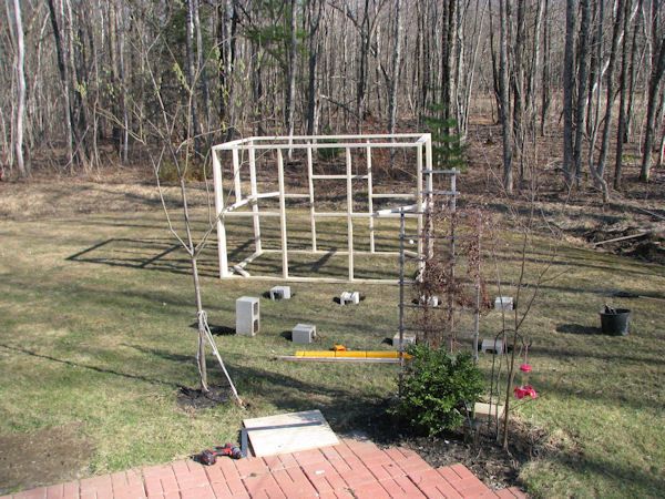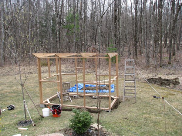Then we added the purlins (going --> that way). Then I screwed on the roof panels.