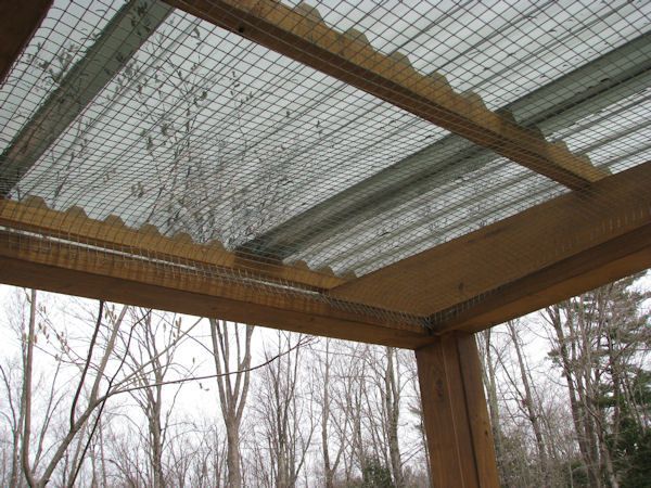 I put hardware cloth in the three openings at the top of the frame, under the roof which leaves an open air space for good ventilation.
