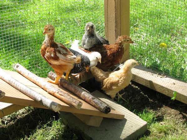 My flock moved in. These first moments were scary. After 5 minutes they were running around and stretching out. So much more fun than the brooder!