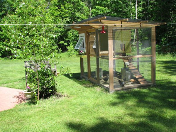 A warm day. I leave the hen house access door open. They can still go in through the chicken door at the top of the ramp too.
